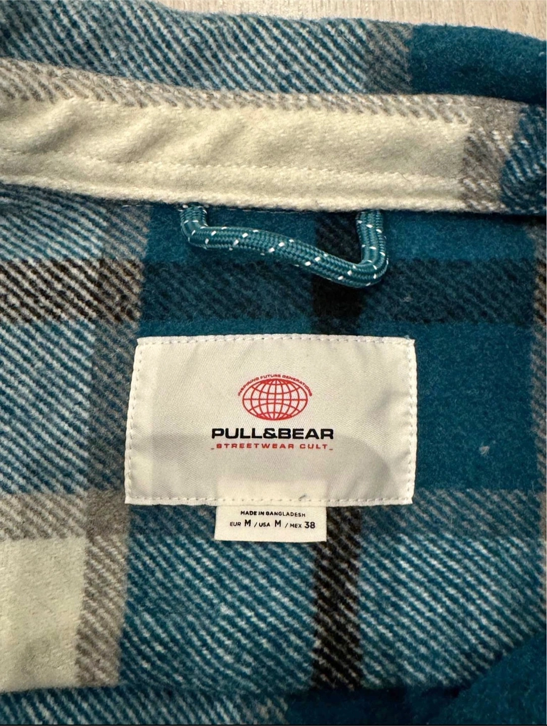 628Cozy Pull&Bear flannel shirt in a cool blue and white plaid pattern! It's in great shape and ready for a new home. Perfect for layering or wearing on its own. Size is M.