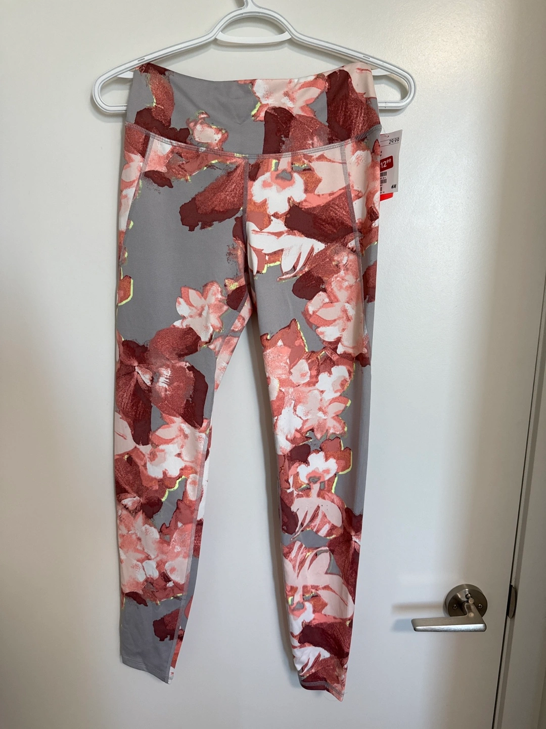 These leggings have a really cute floral print! They're from H&M and are in great condition. The tag shows they were originally $29.99 but are now marked down to $12.99.