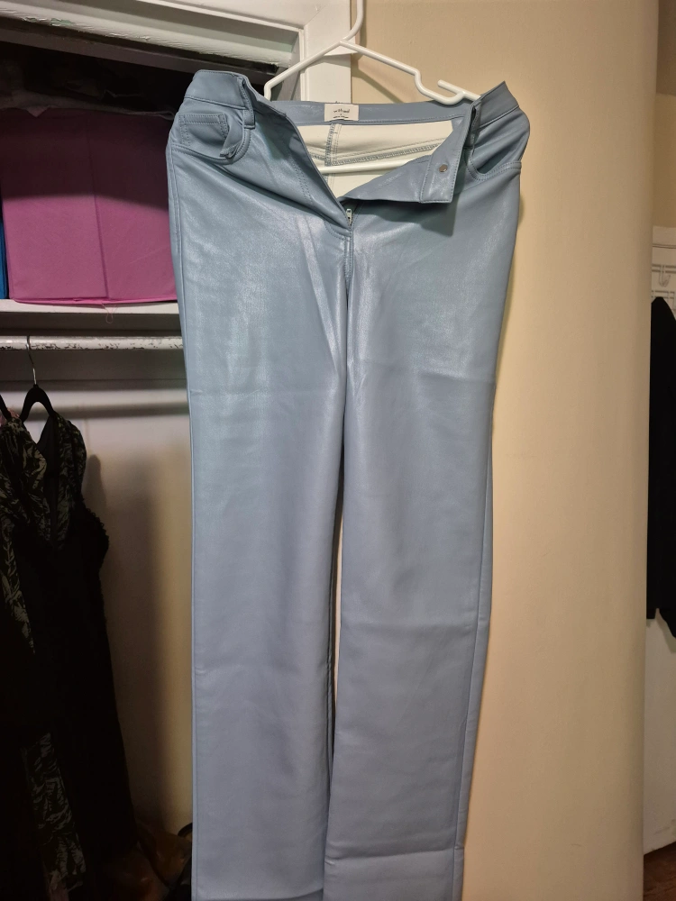 These Wilfred vegan leather pants are in excellent condition! They're a stylish light blue colour and size 0. Great for adding a bit of edge to your wardrobe!