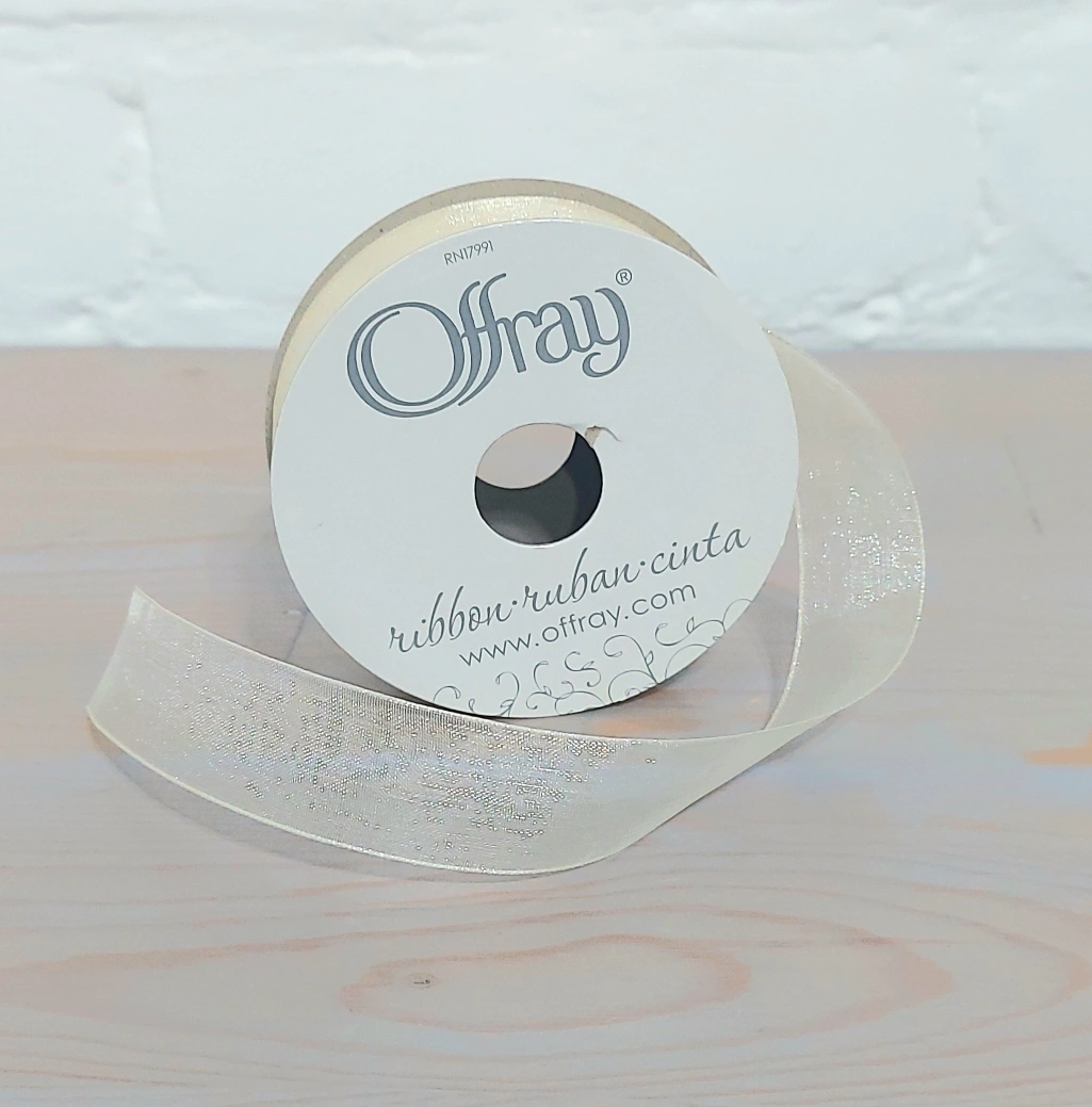 Champagne chiffon ribbon spool— near new without packaging, a small strand was cut off previously. No longer needed. From a pet free and smoke free home.