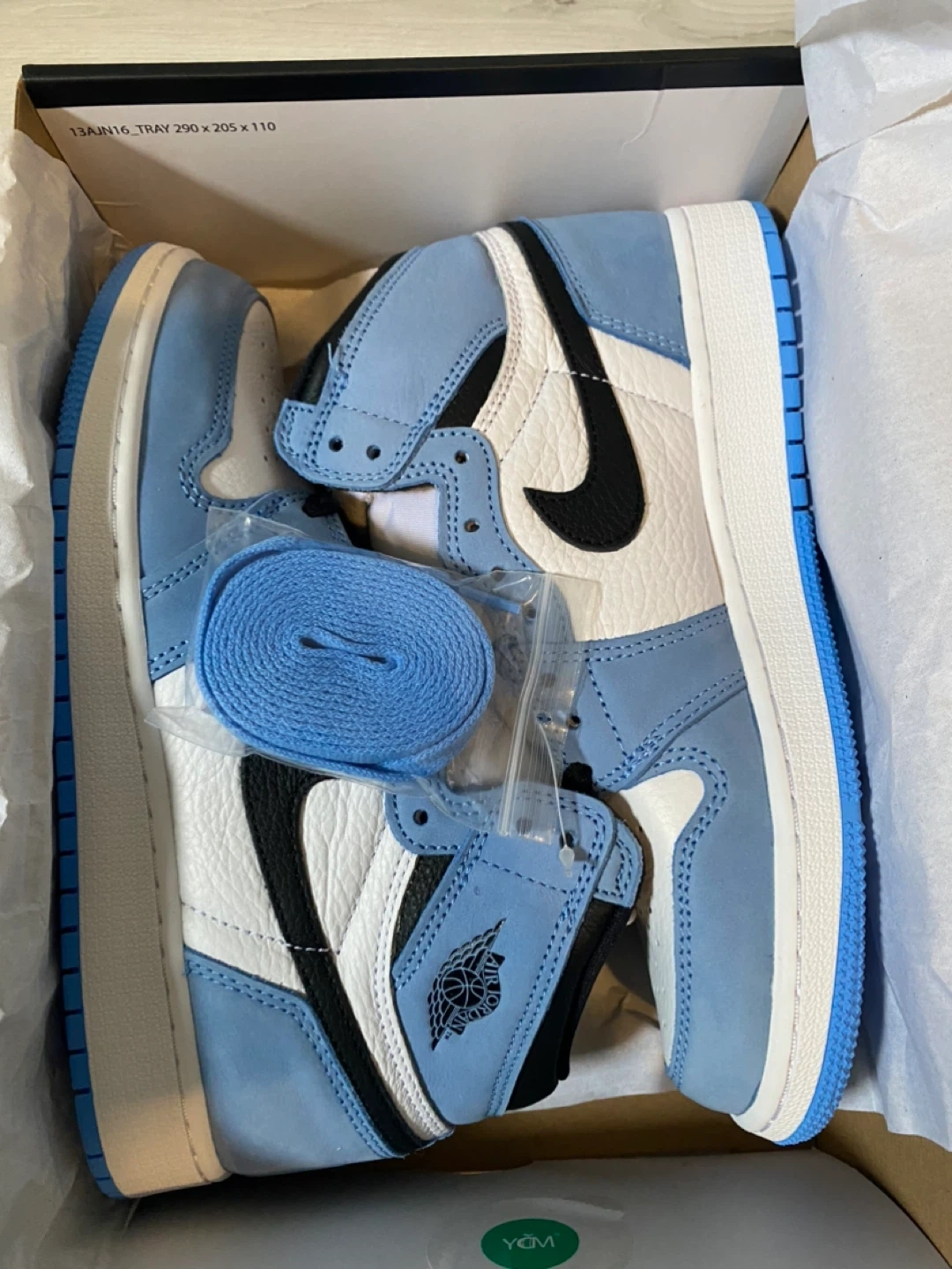 Selling a pair of Nike Air Jordan 1 Retro High in the UNC Blue colourway, size 6.5 (US). These are in new condition and come with the original box. The box includes an extra pair of laces! A classic and stylish addition to any sneaker collection