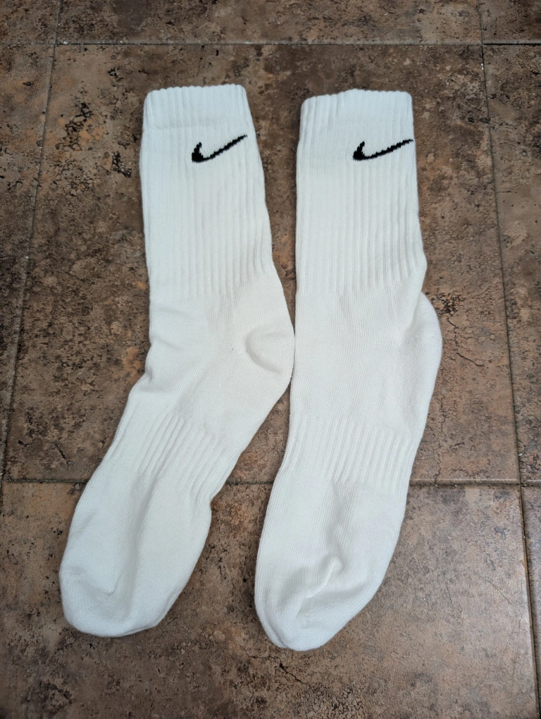 Selling a pair of white Nike socks. They're in good condition and ready for a new owner!
