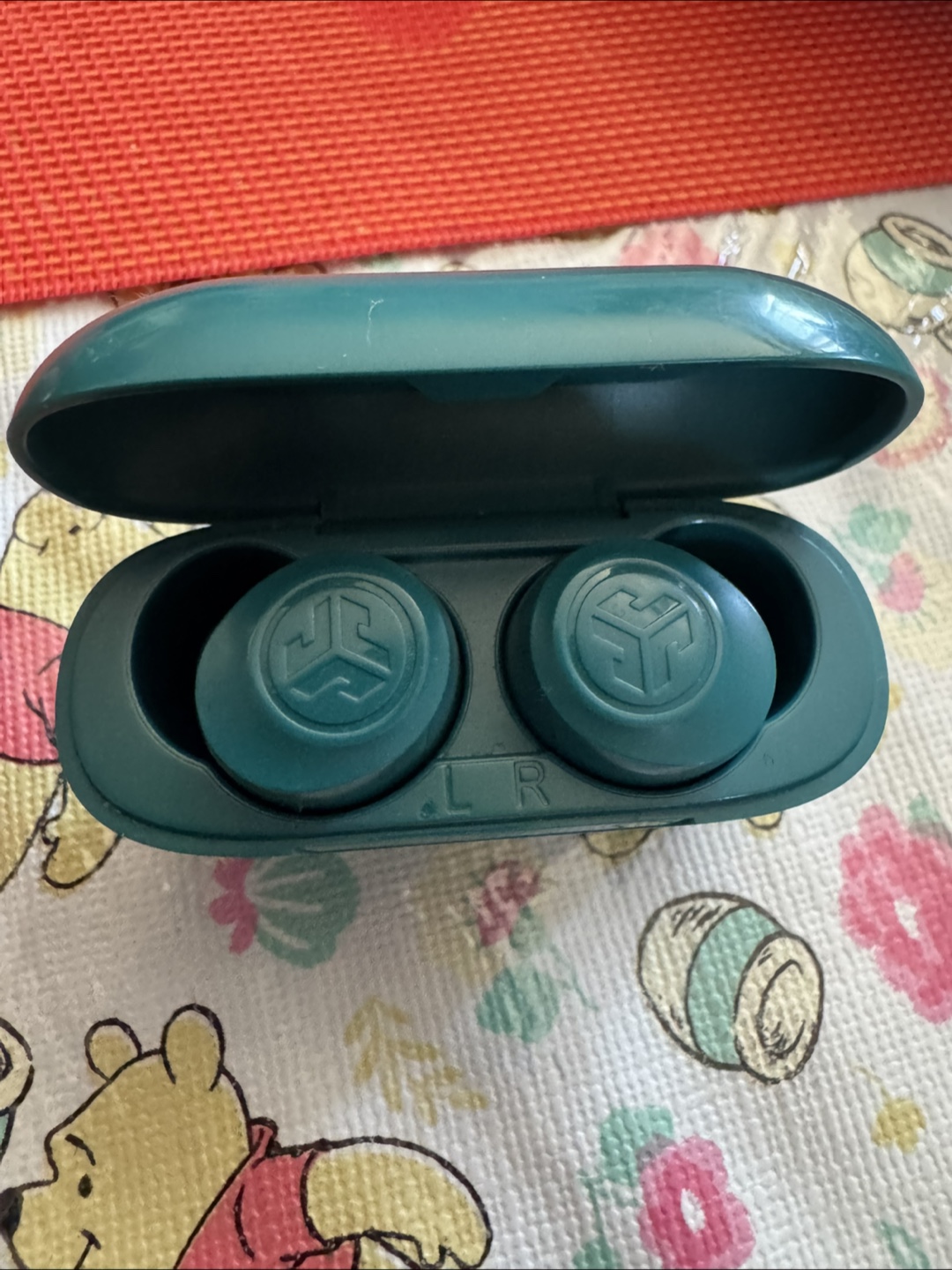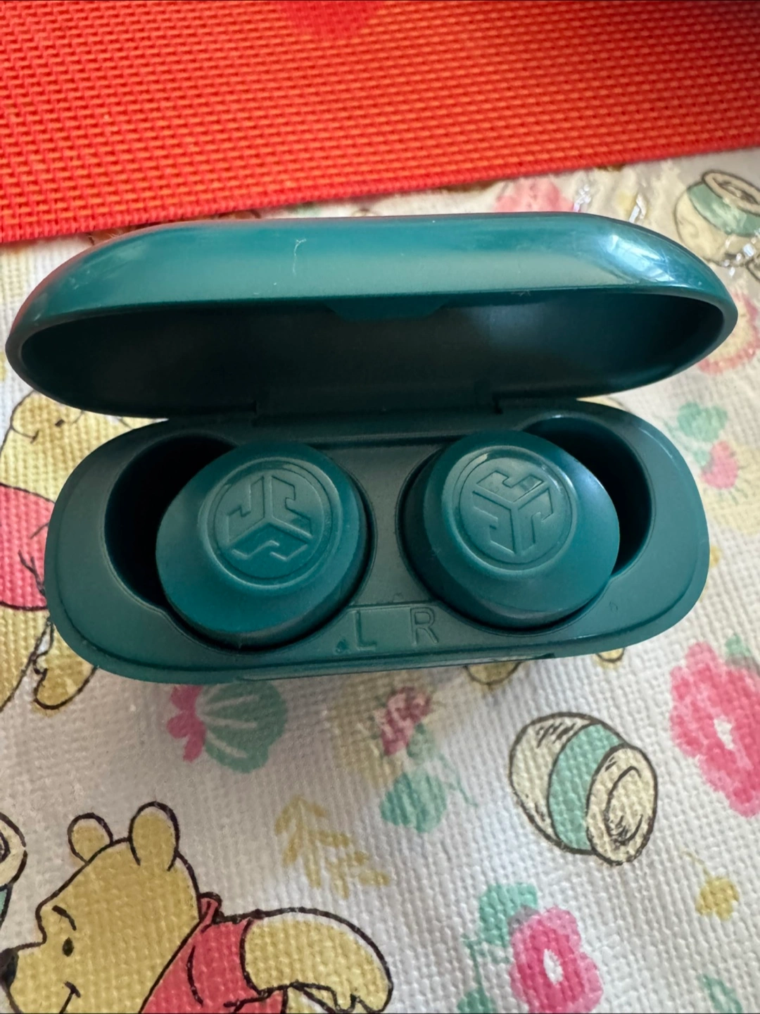 Selling a pair of JLab Go Air Pop earbuds in teal. They are in great condition and come with the charging case. Lightweight and portable, perfect for on the go!