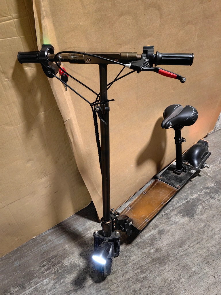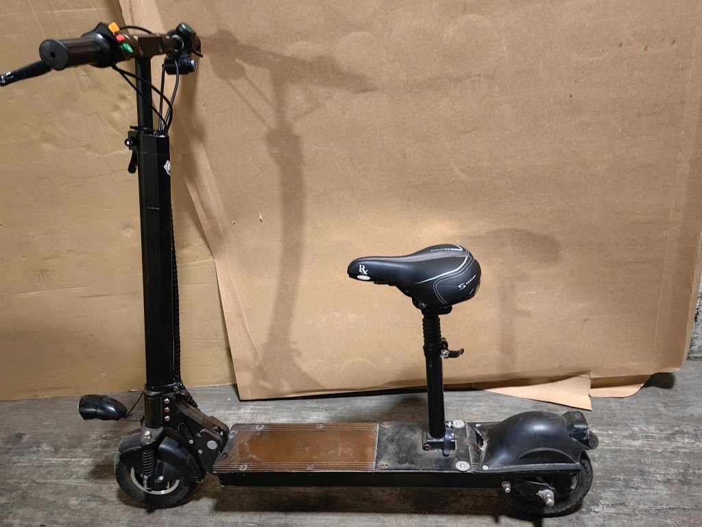 Selling an electric scooter that's perfect for getting around town. It comes with a seat for added comfort during longer rides. It's in good condition and ready for a new owner!