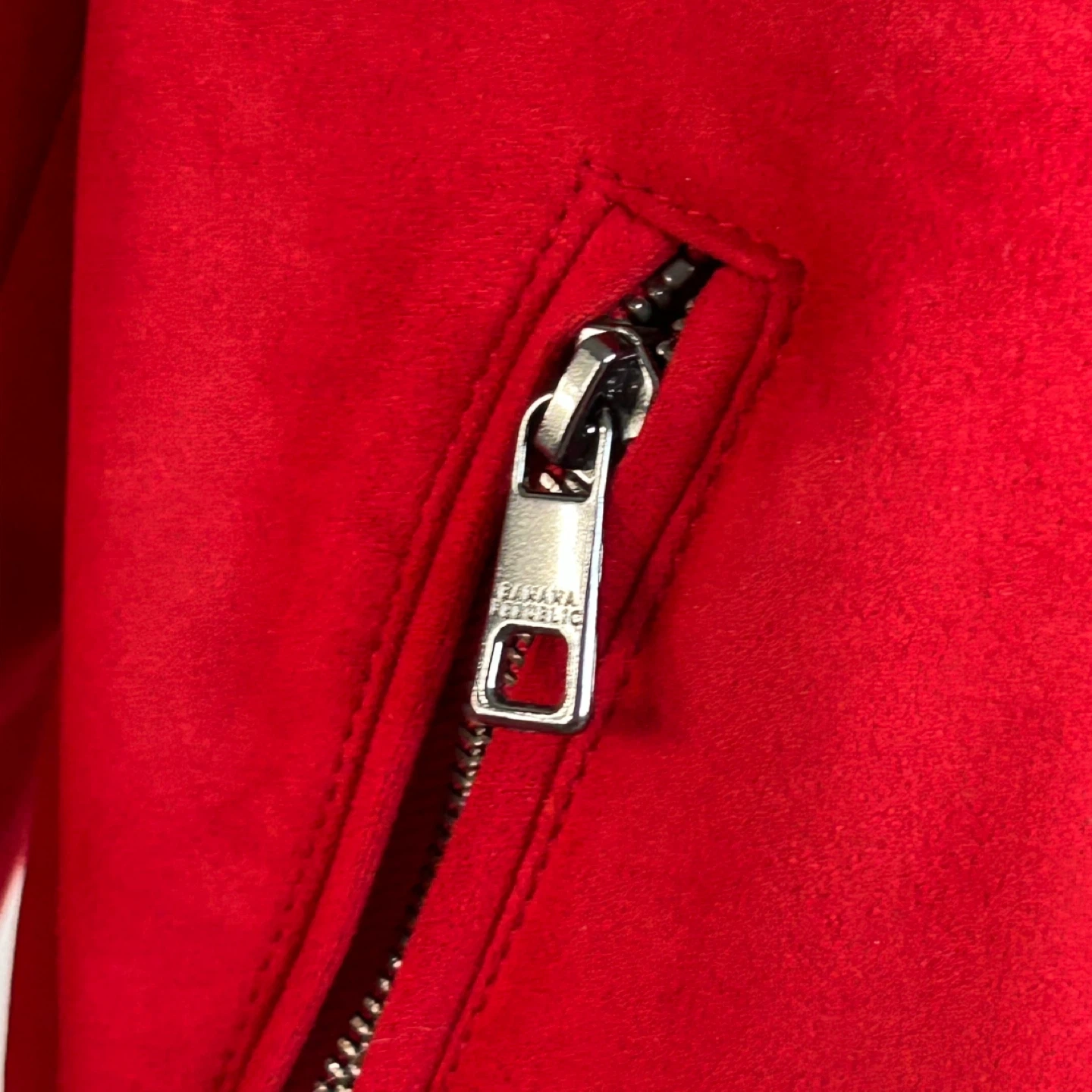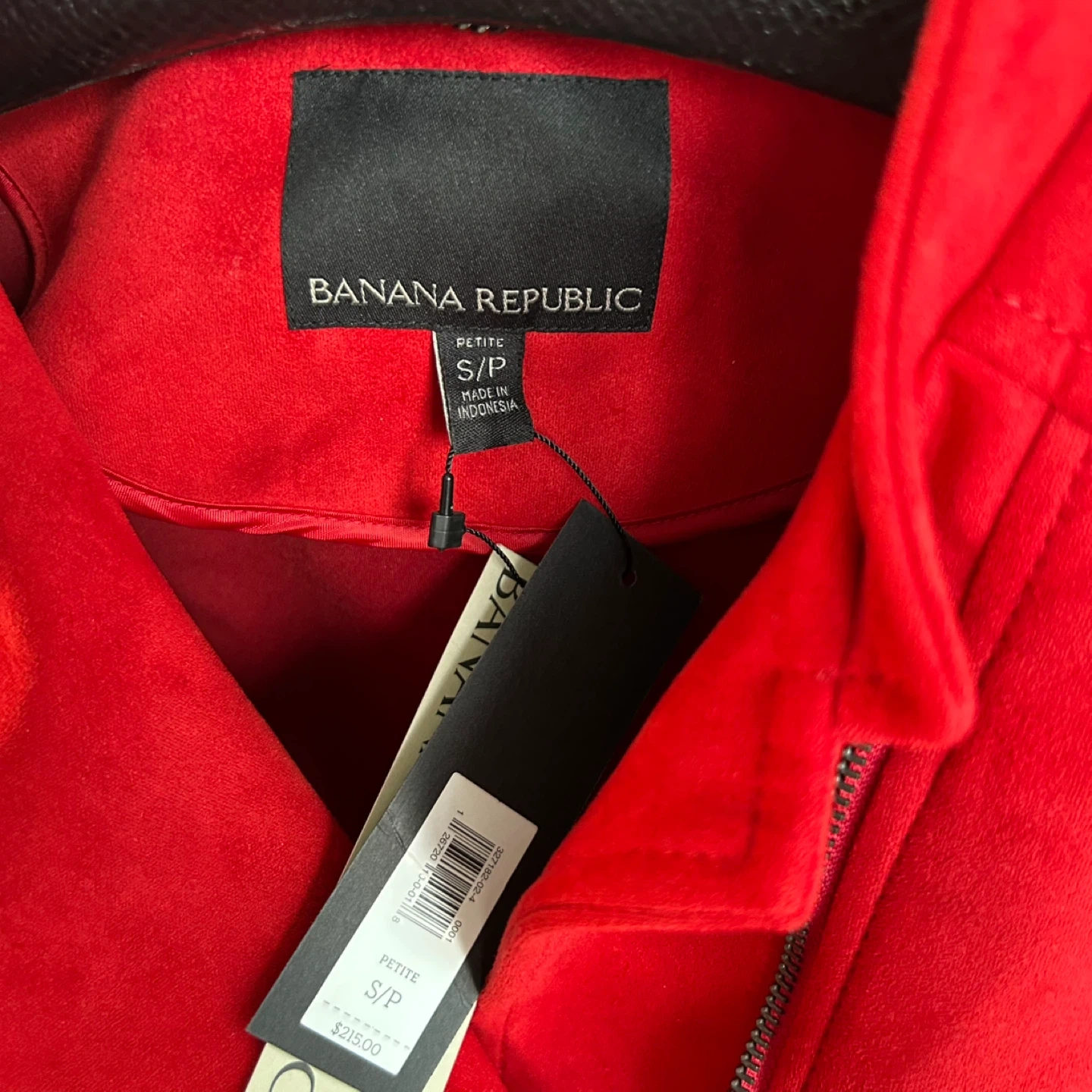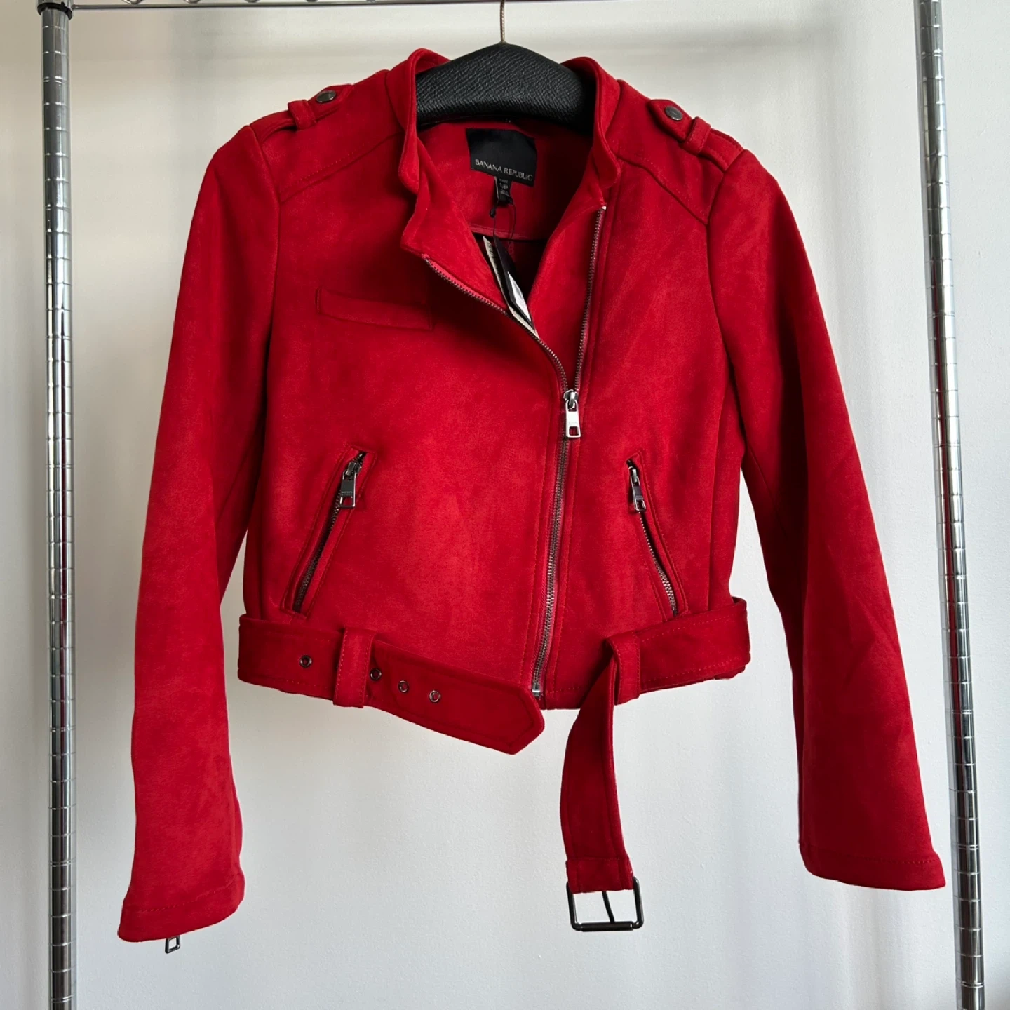 This is a brand new Banana Republic Petite moto jacket in a vibrant red suede. It's a size S/P (Small Petite) and still has the original tag attached! Originally bought for $215.00.