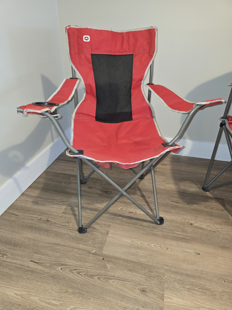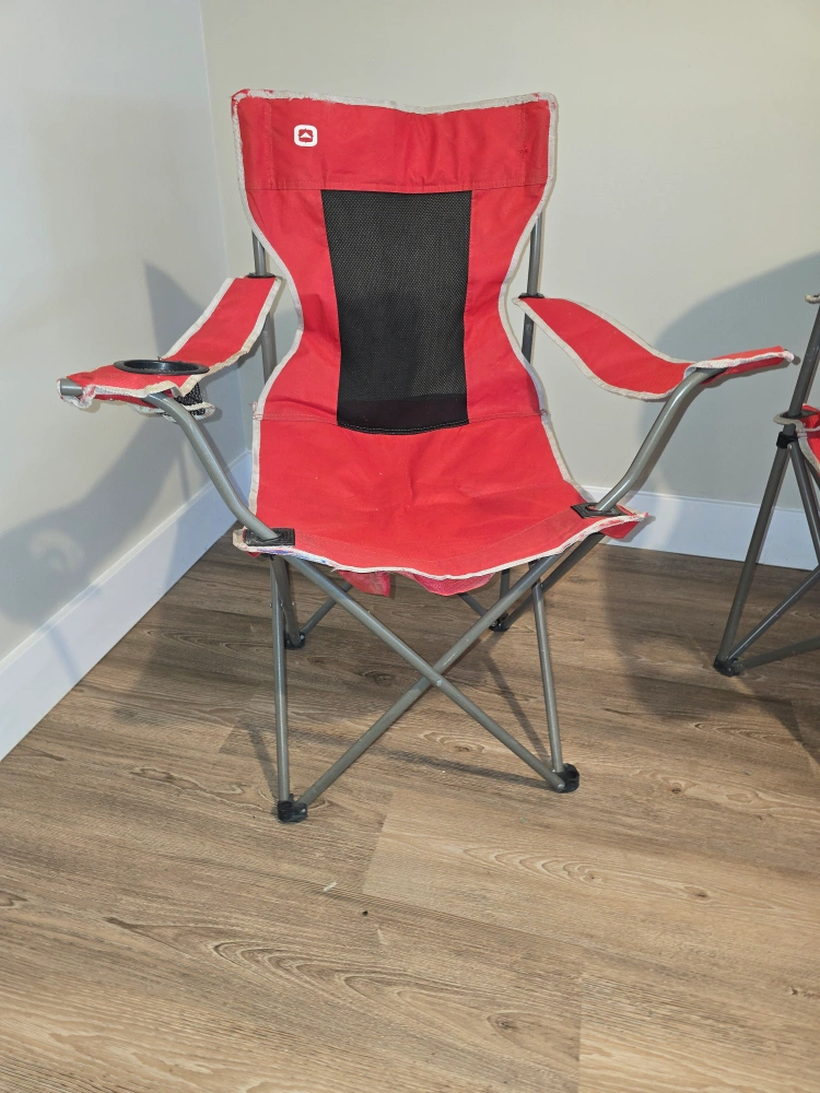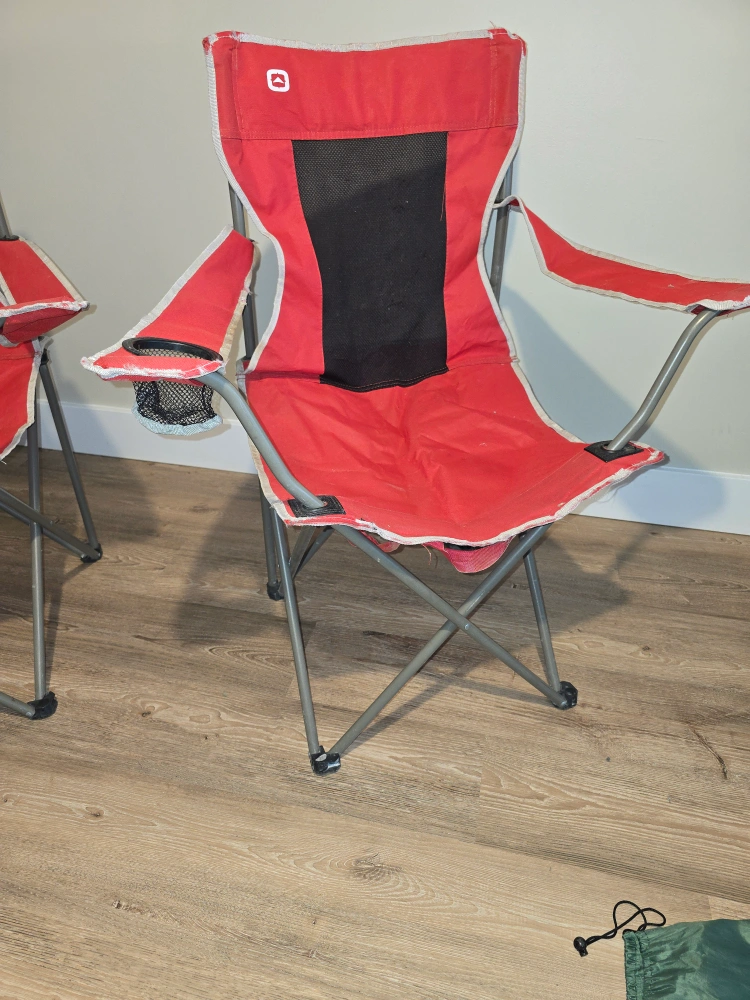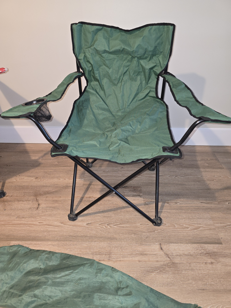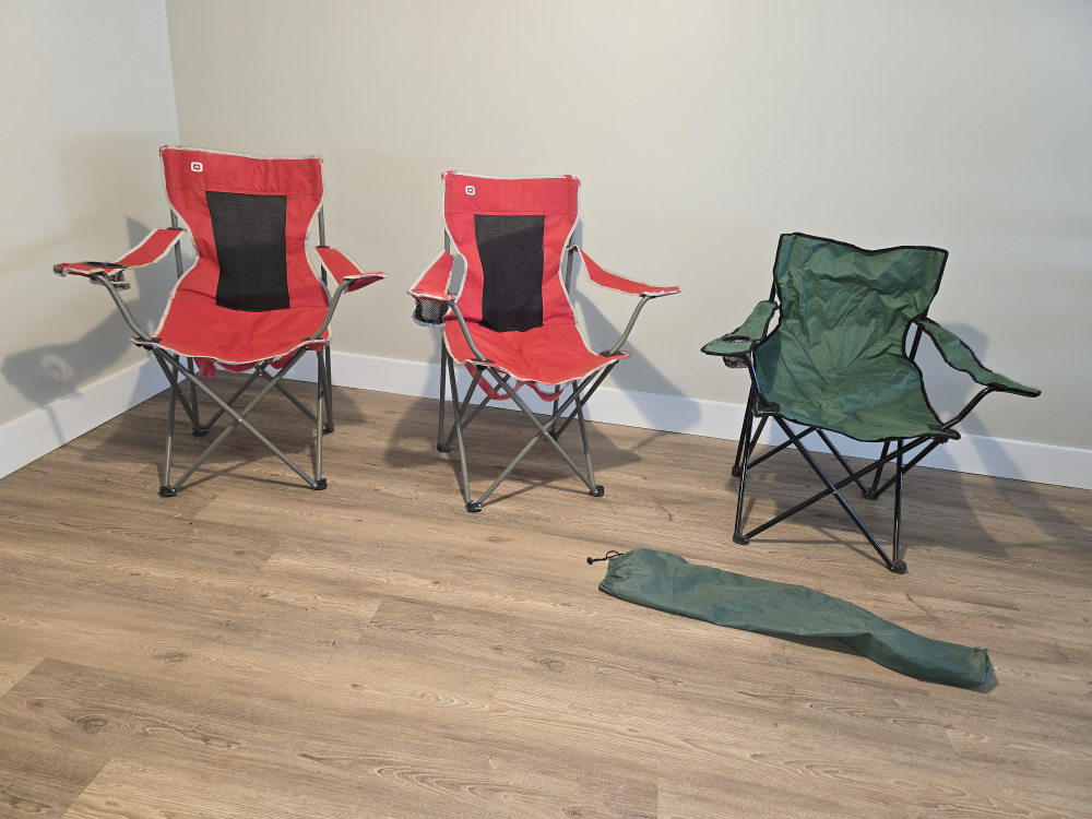 each one is 2 dolars. Three Woods folding camp chairs available! the green one come with its carrying bags. Perfect for camping, picnics, or just relaxing in the backyard!
