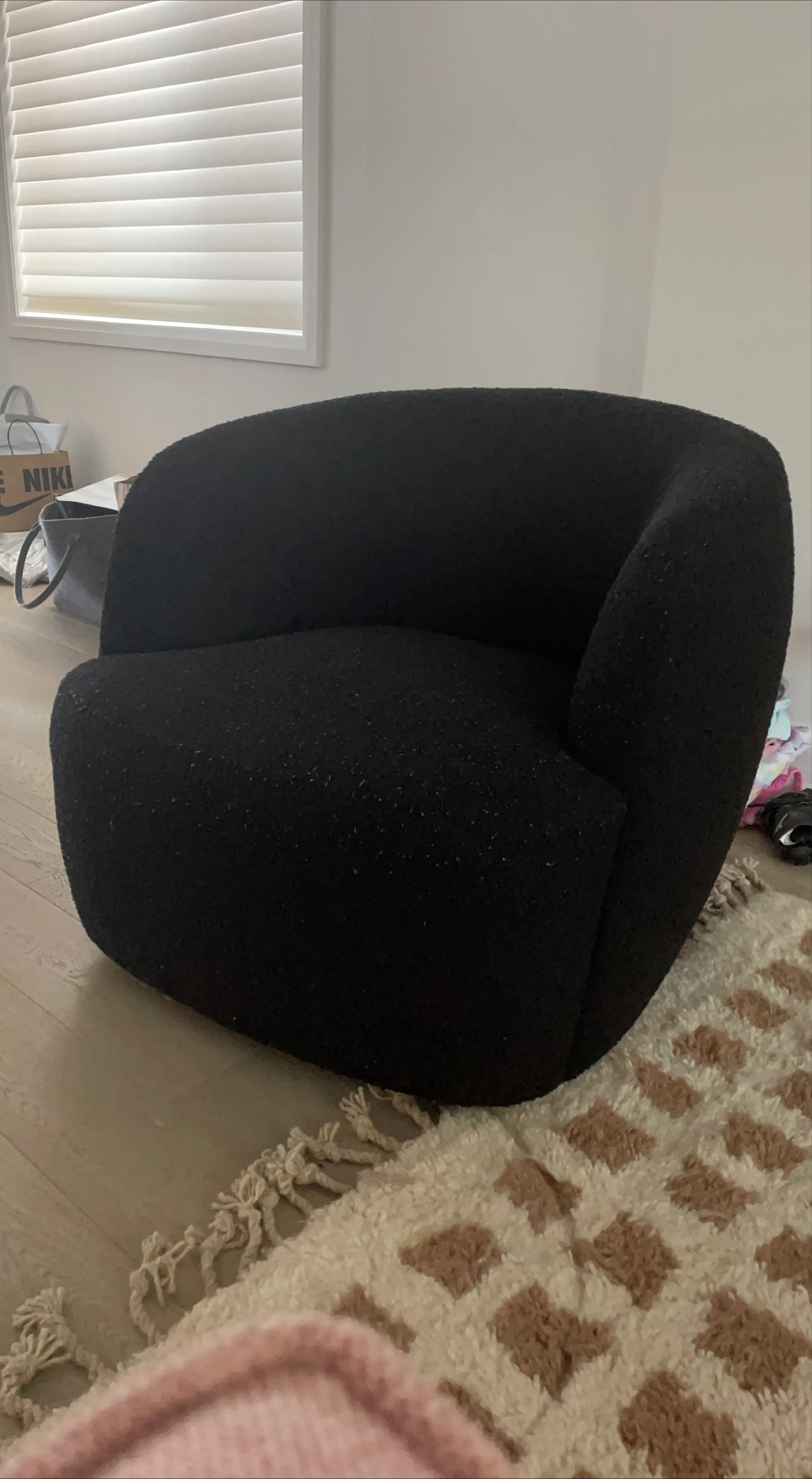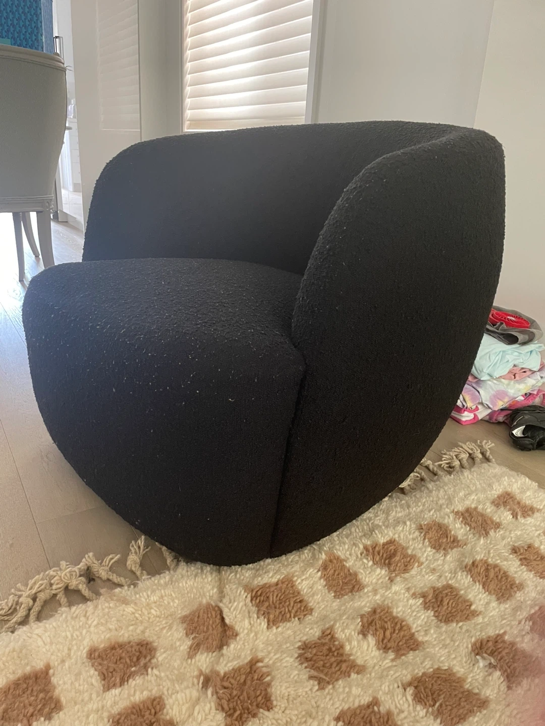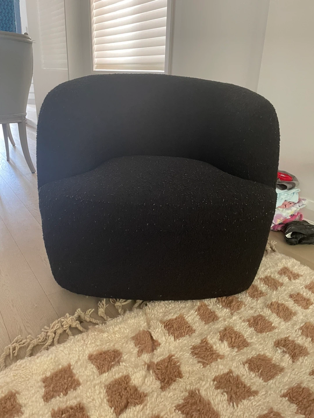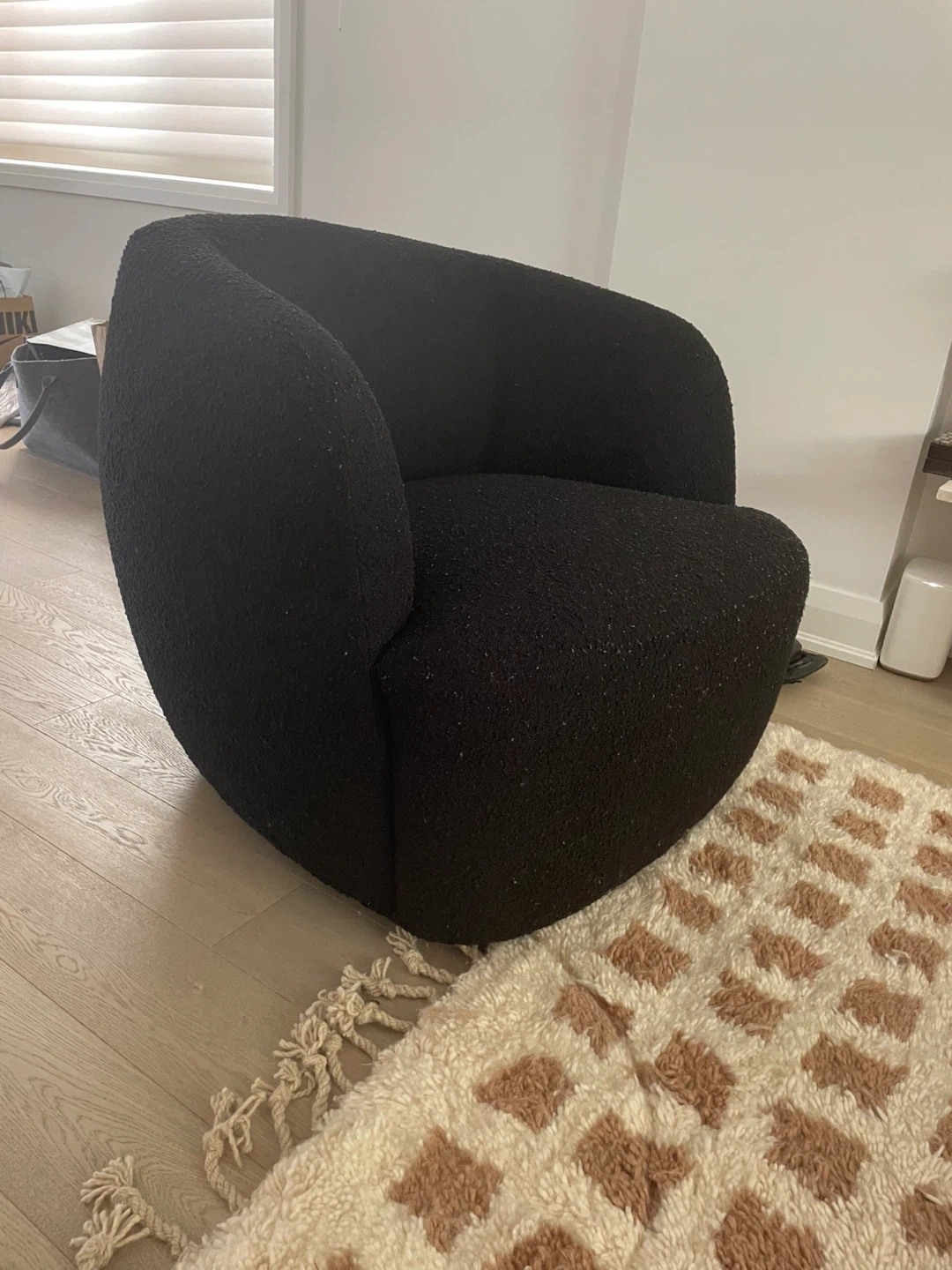 CB2 goop black boucle swivel armchair
