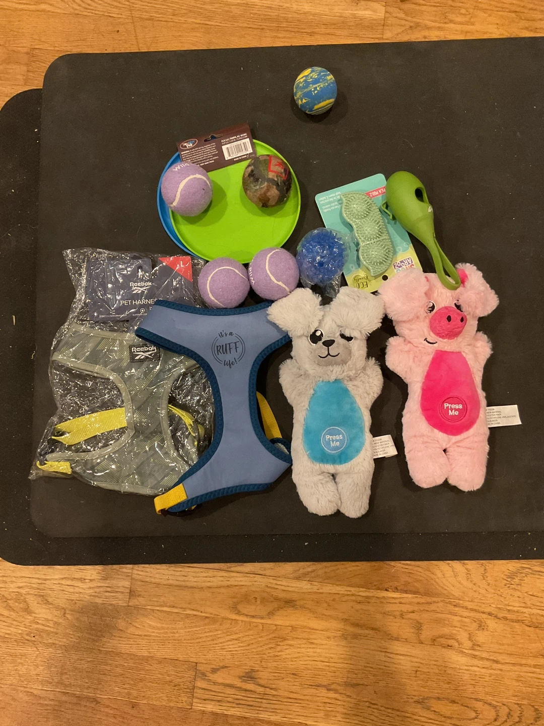 Includes a variety of fun toys for your furry friend, plus a brand new Reebok harness to keep them safe and stylish on walks