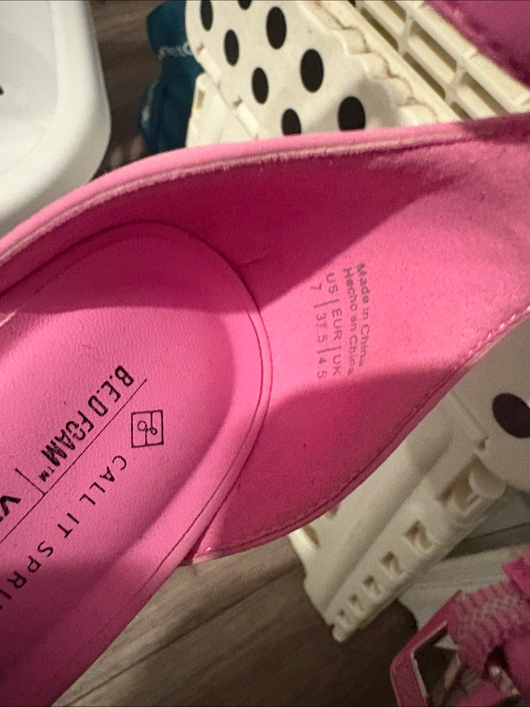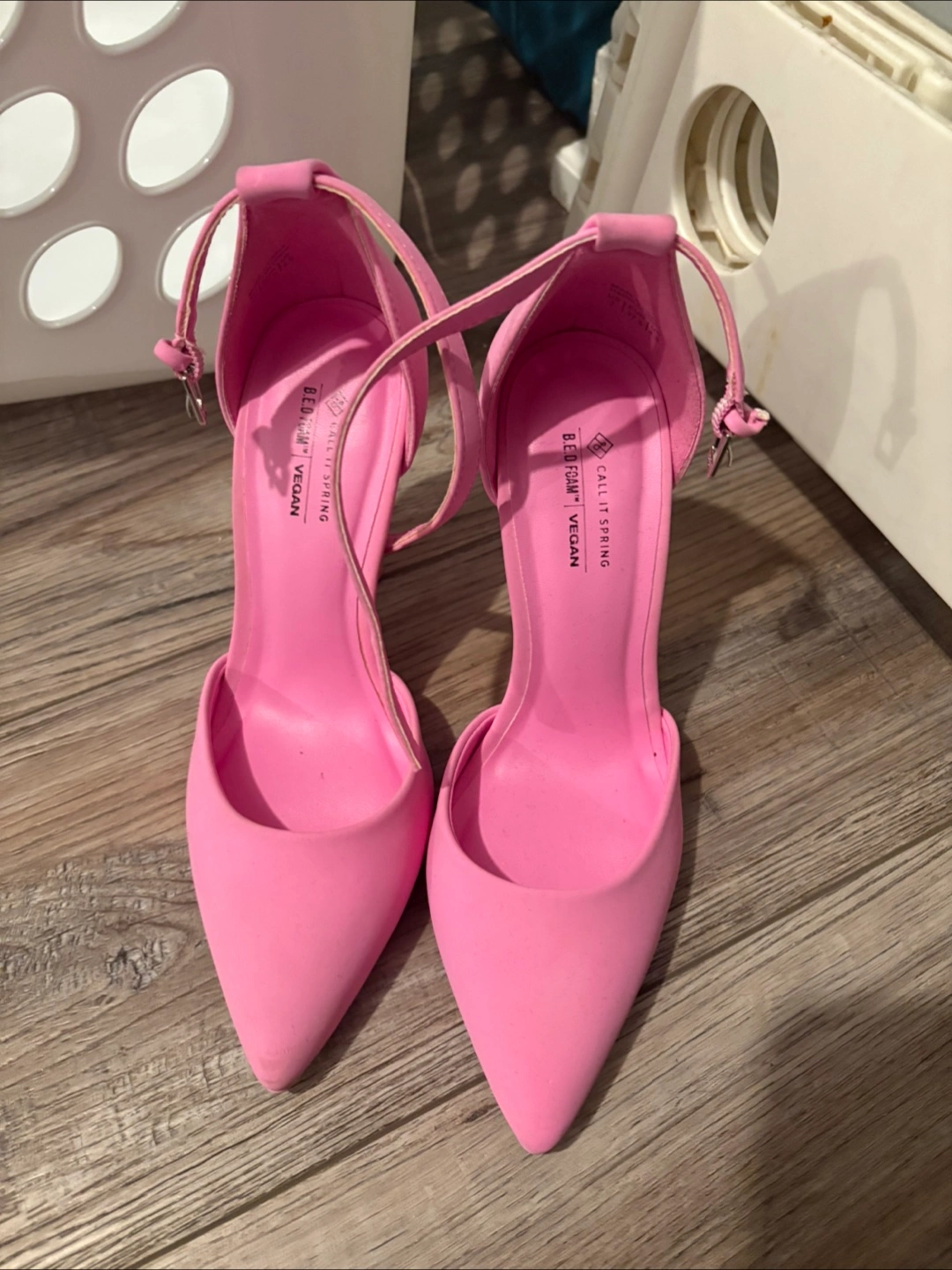 71Selling a pair of Call It Spring heels in a vibrant pink colour! They're a size 7. They have some wear on the soles, but still look great. Originally bought for $69.99