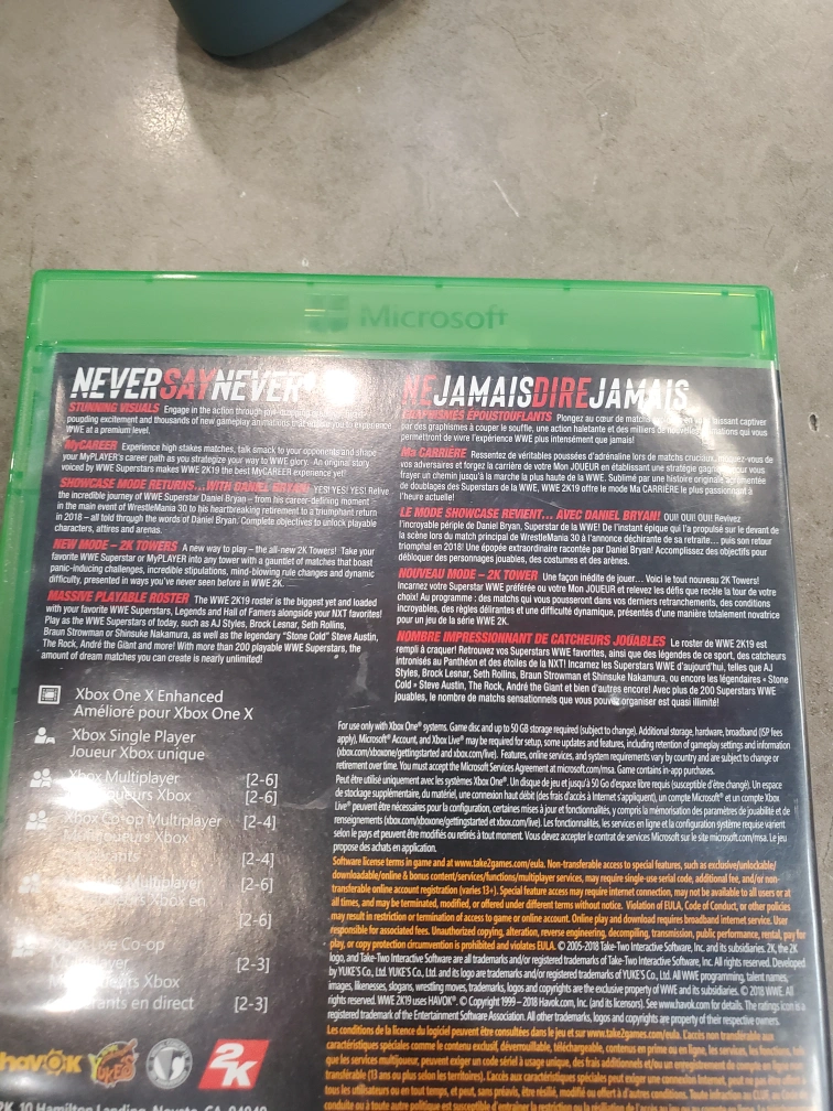 Selling a used copy of WWE 2K19 for Xbox One! It's a fun wrestling game to play with friends or by yourself. The game is in good condition and ready for a new home!