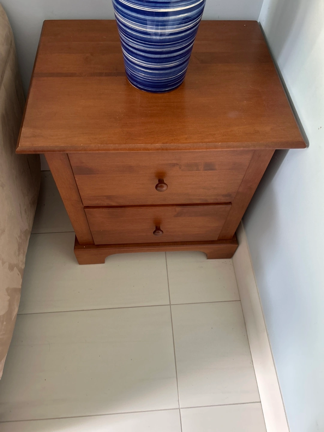 132Selling a cute wooden bedside table! It has two drawers, perfect for storing your nighttime essentials. It's in great condition and would look lovely in any bedroom