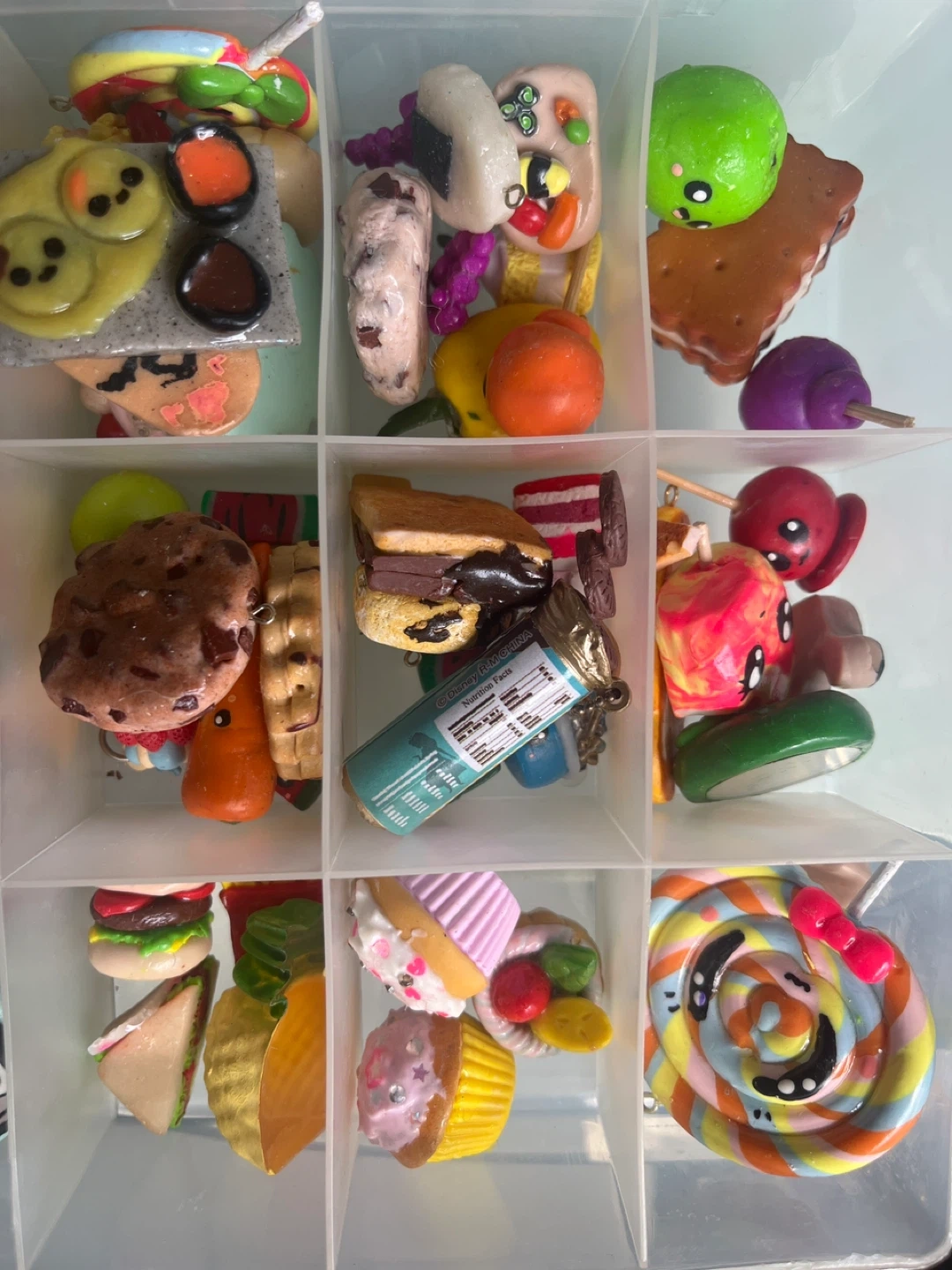 Check out this super cute collection of handmade food charms! They look like tiny versions of all sorts of yummy treats, from sushi and sandwiches to cupcakes and lollipops. Perfect for adding a fun touch to your accessories or crafts!
