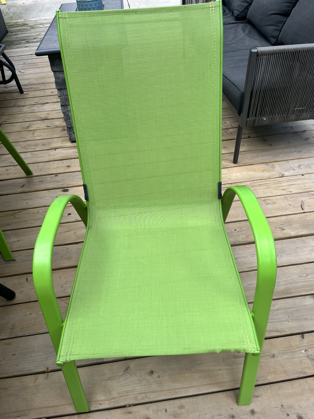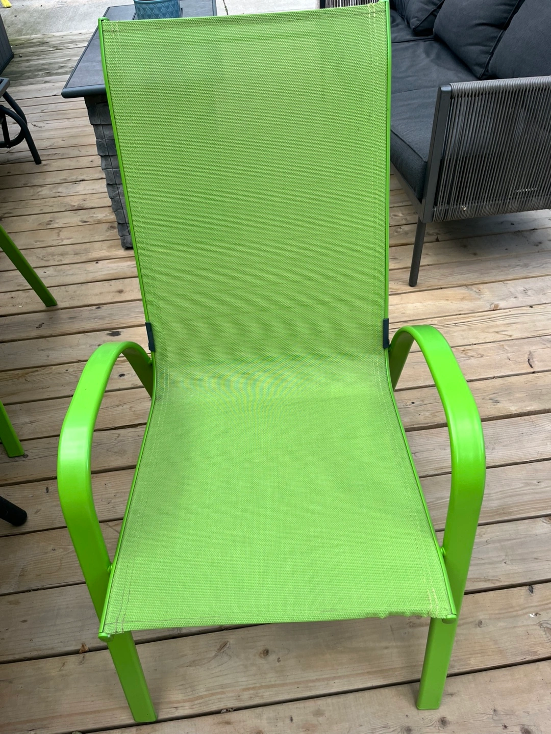 Selling green outdoor patio chairs. It's perfect for relaxing in your backyard or on your deck. The chair is in good condition and ready for a new home! Willing to sale them as 2 sets of 4 instead of 8.