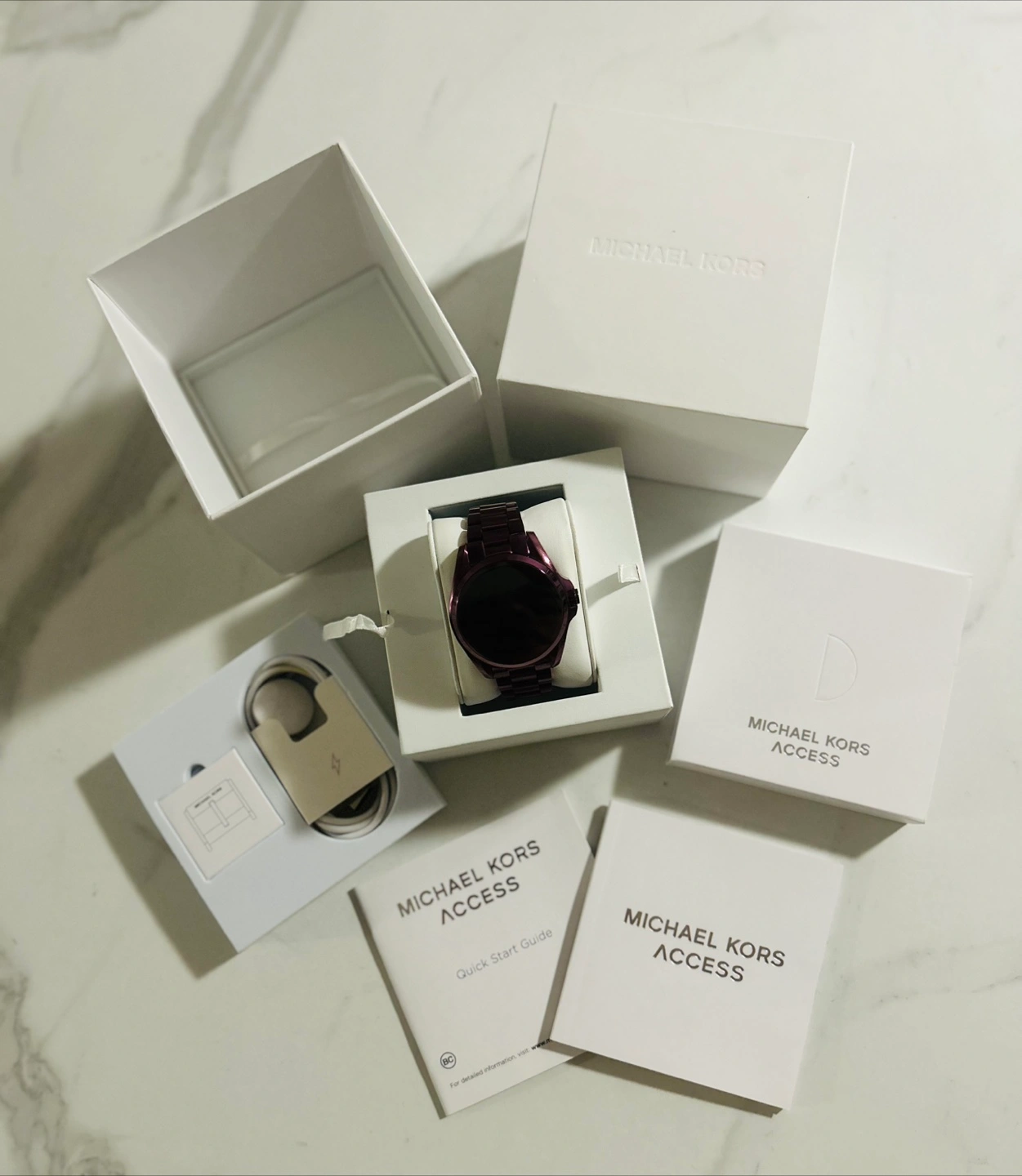 Selling a Michael Kors Access Gen 5E smartwatch in a beautiful plum colour! It comes with its original box, charger, and quick start guide. It's in excellent condition and ready for a new owner!