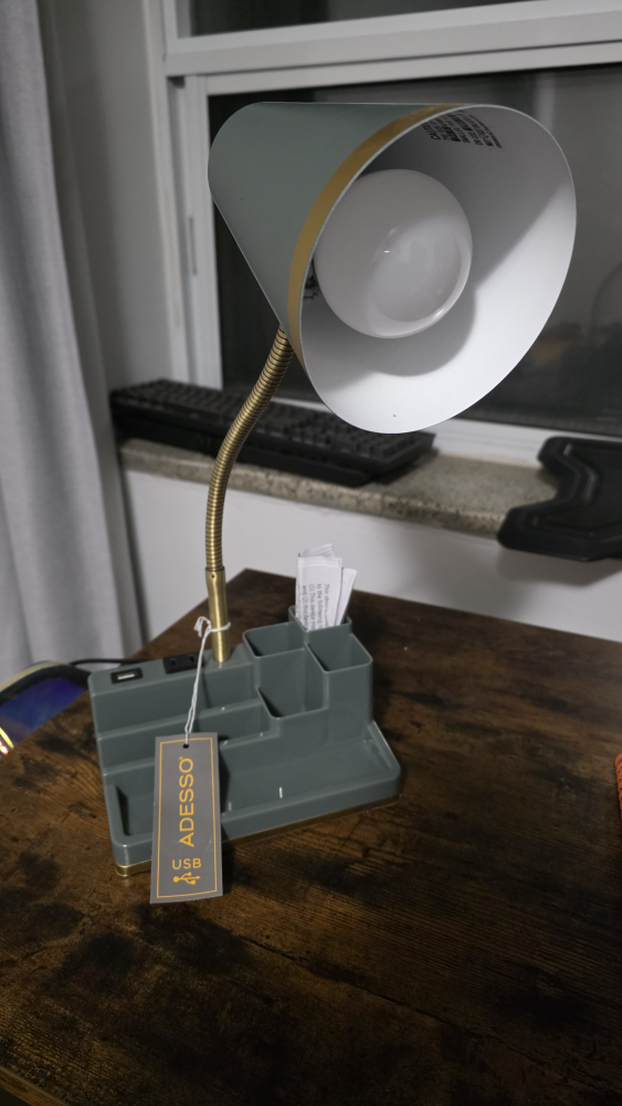 Selling an Desk lamp! It comes with a built-in organizer and a USB port for charging your devices. It's perfect for a desk or bedside table.