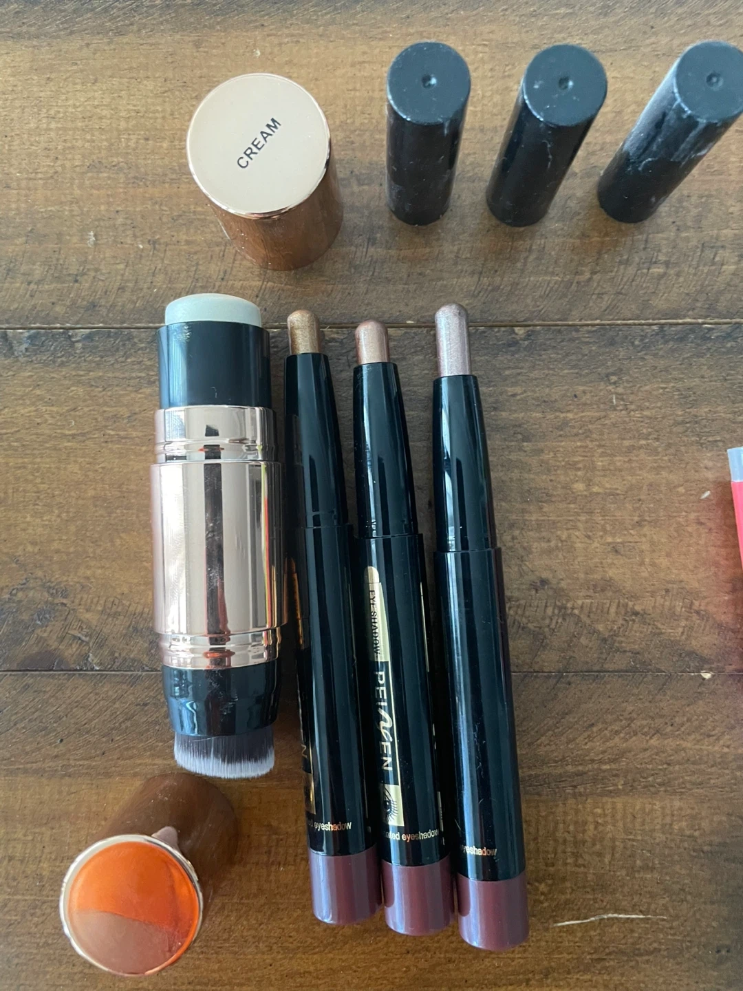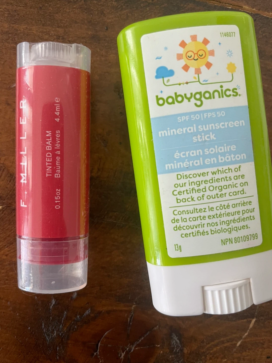 Selling a F. Miller tinted balm (0.15oz/4.4ml) and a Babyganics SPF 50 mineral sunscreen stick (13g). Makeup stick silver and 3 different eye shadow sticks All items are unused Pickup only from 185 Roehampton Ave