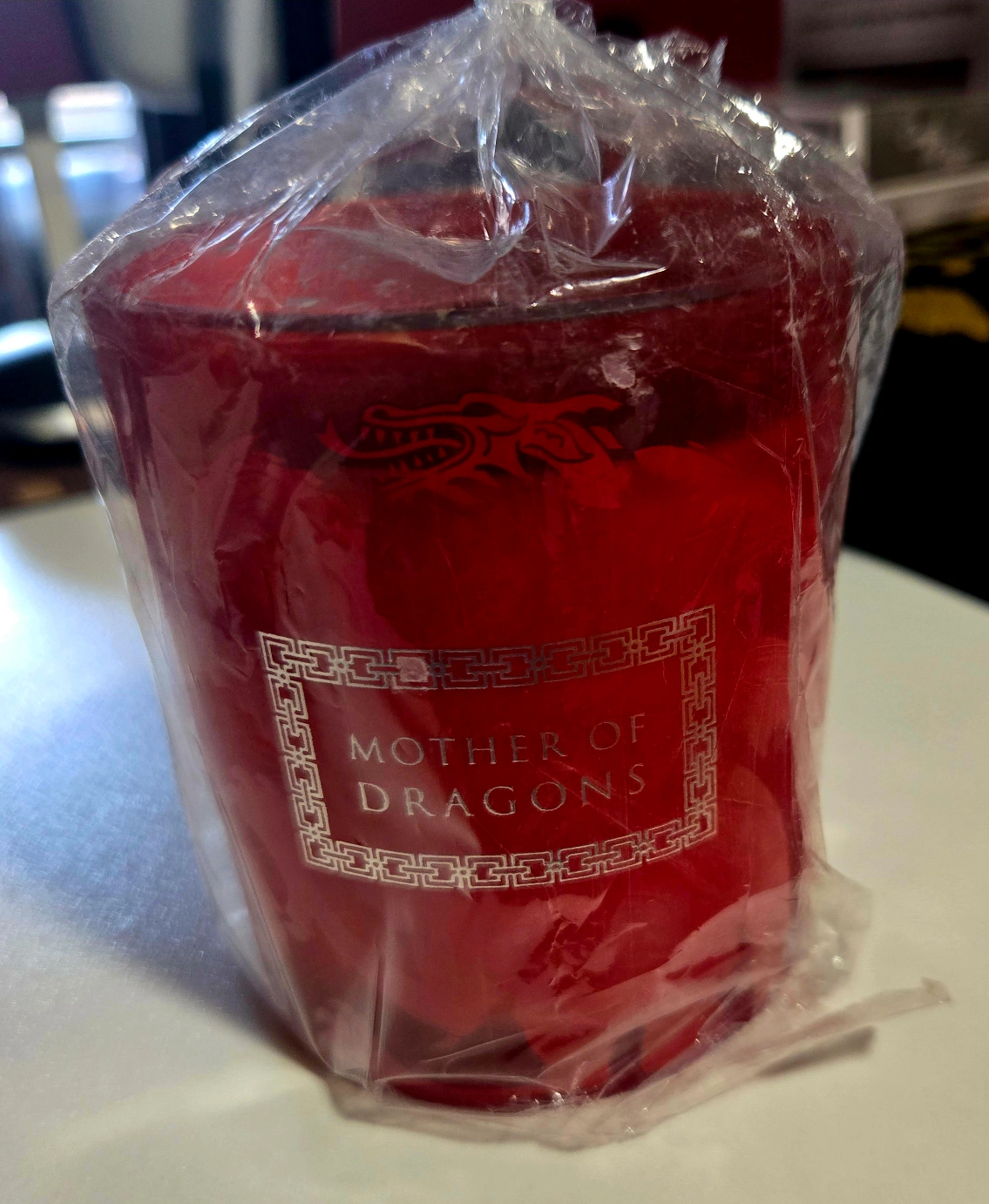 Brand New! Red GOT Candle with design & saying on it. ("Mother of Dragons") Pick up only at Victoria Park and York Mills