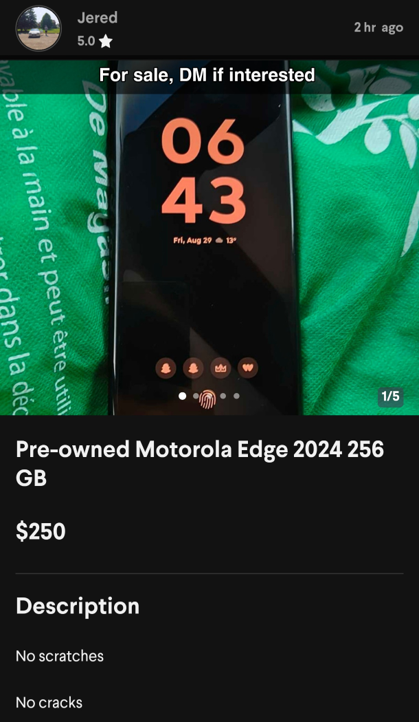 Selling my Motorola Edge 2022. It's in great condition and ready for a new home! It has a 50MP OIS camera.