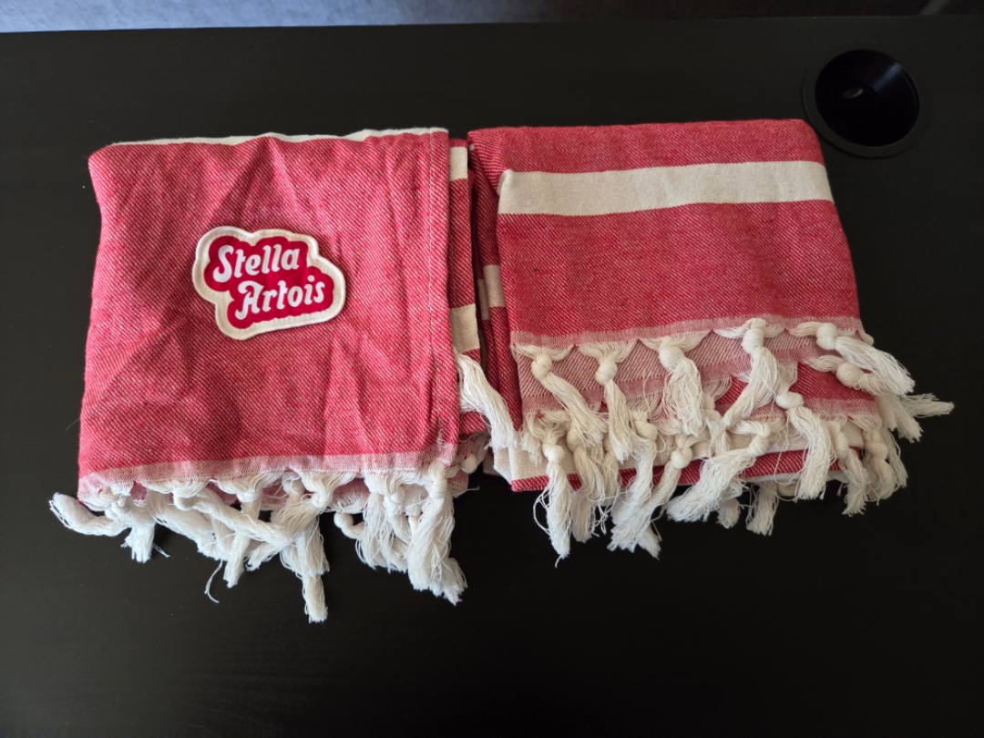 2 Stella Artois Beach Towels - Red & White