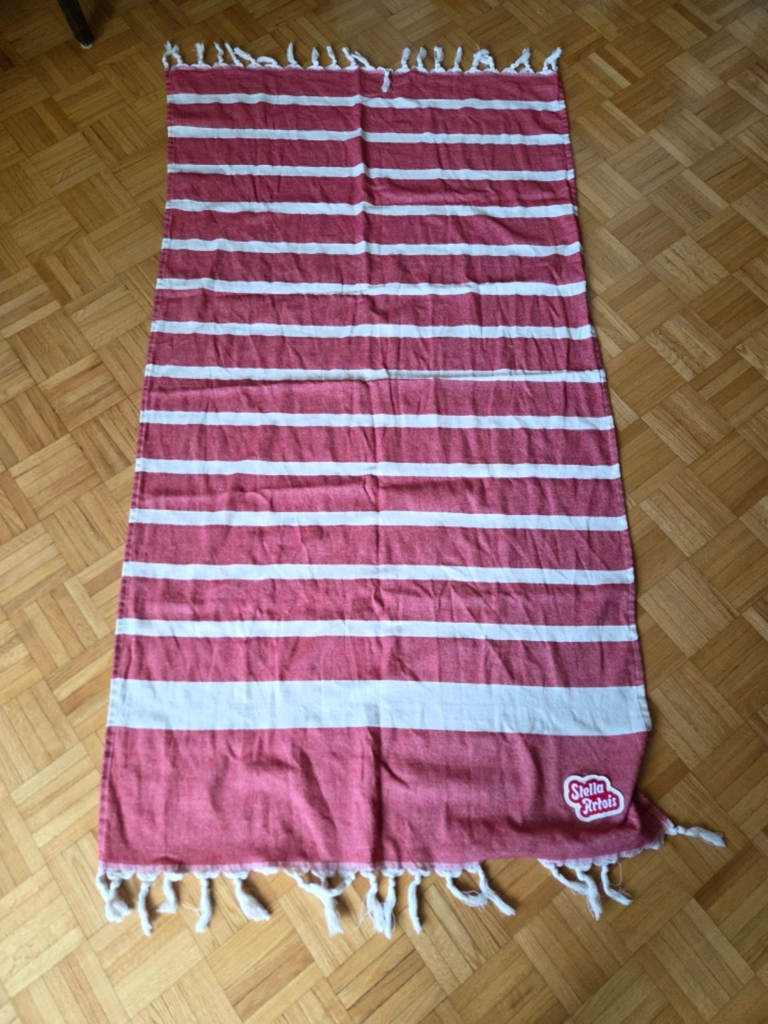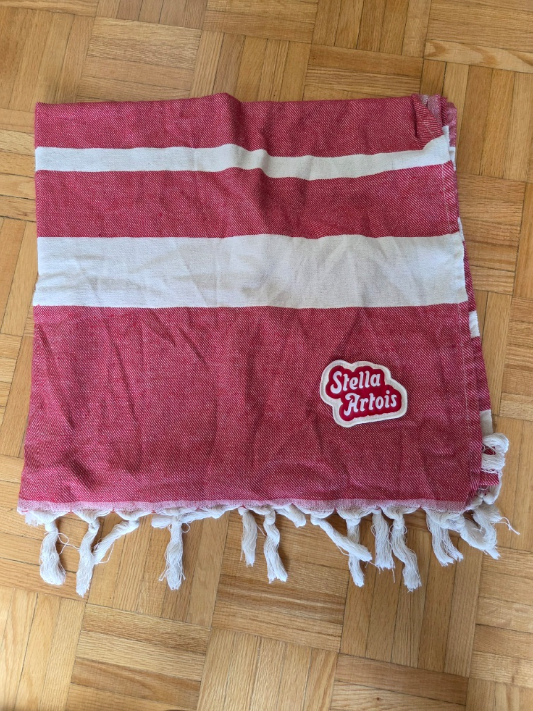 Selling 2 Stella Artois beach towel in red and white! They are in great shape (only used once) and perfect for summer days at the beach or by the pool. The towel features the Stella Artois logo and a fringed edge.