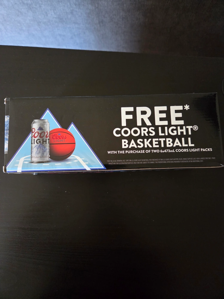 Giving away a free Coors Light basketball promotional item. It was part of a limited-time offer with the purchase. It's a unique collectible for any basketball or Coors Light fan.