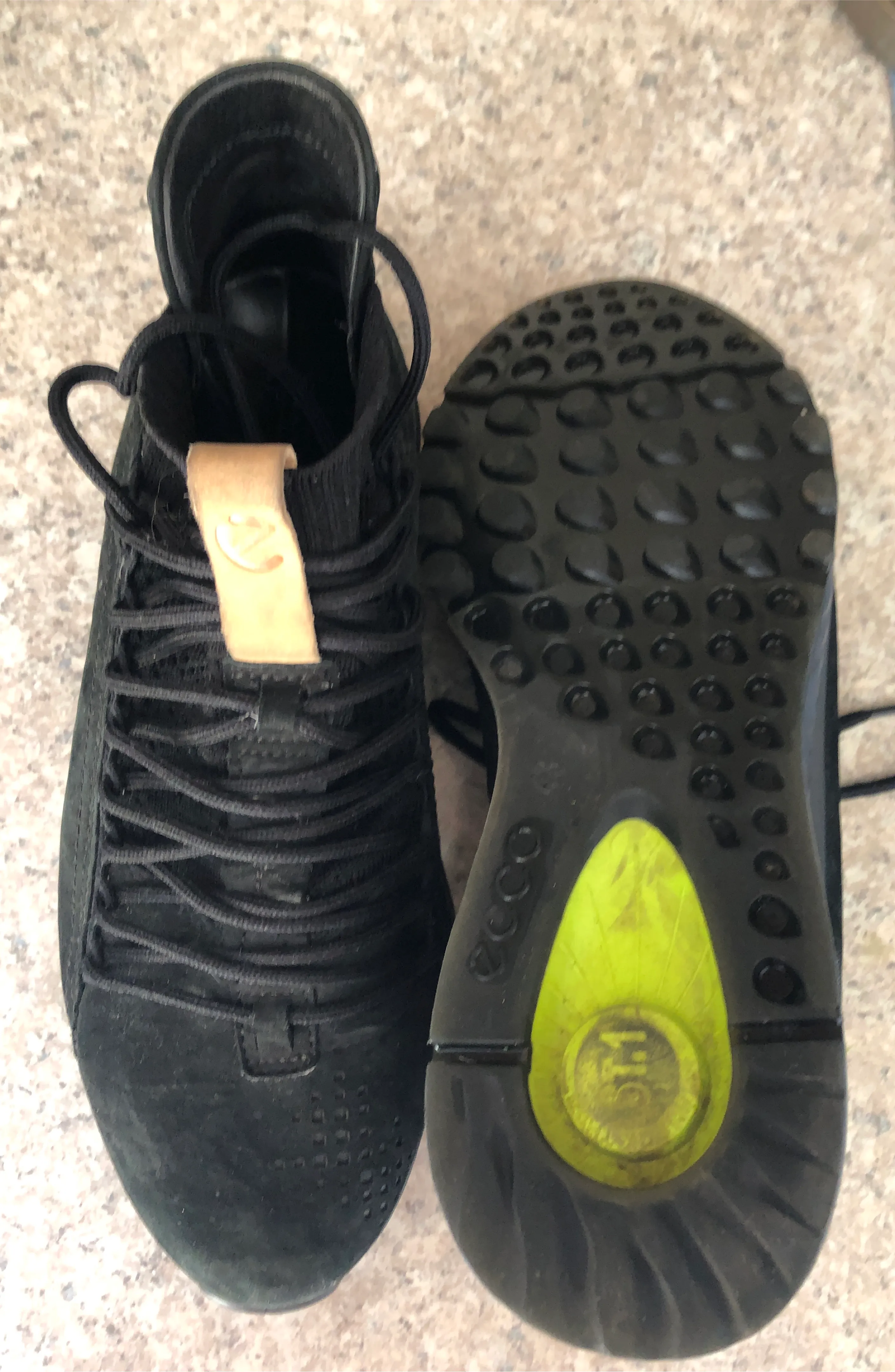 Selling a pair of men's Ecco sneakers in black leather. The size is 9 US, 43 EU, and 9.5 UK. These sneakers are in good condition and ready for a new home!