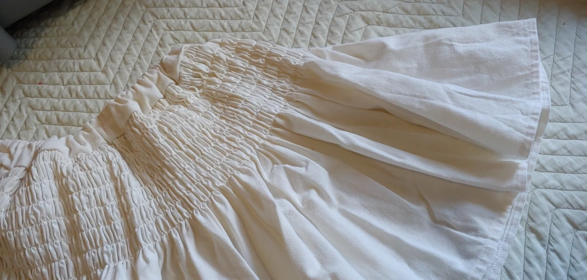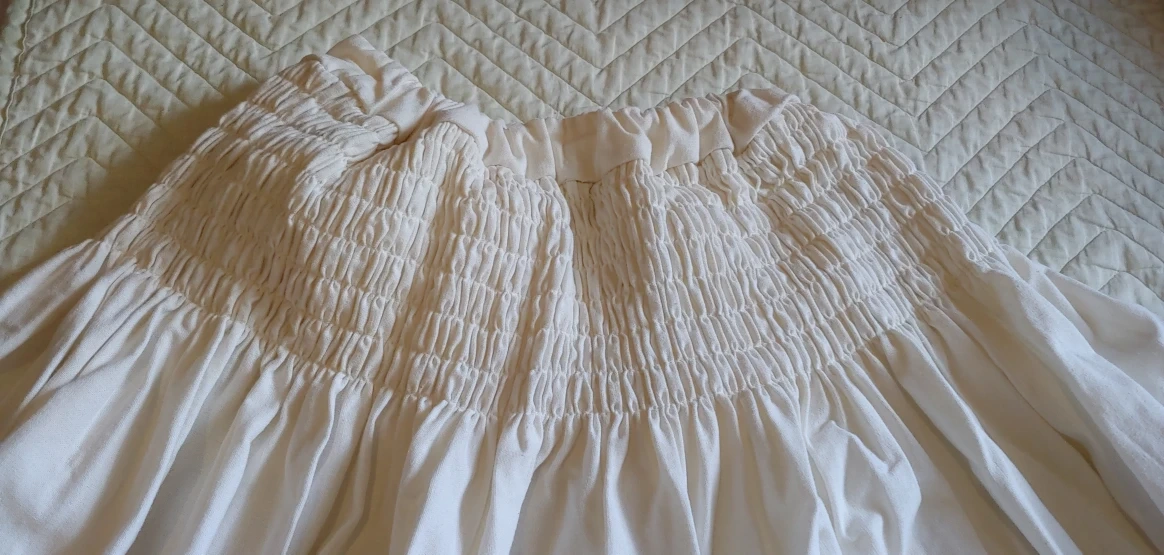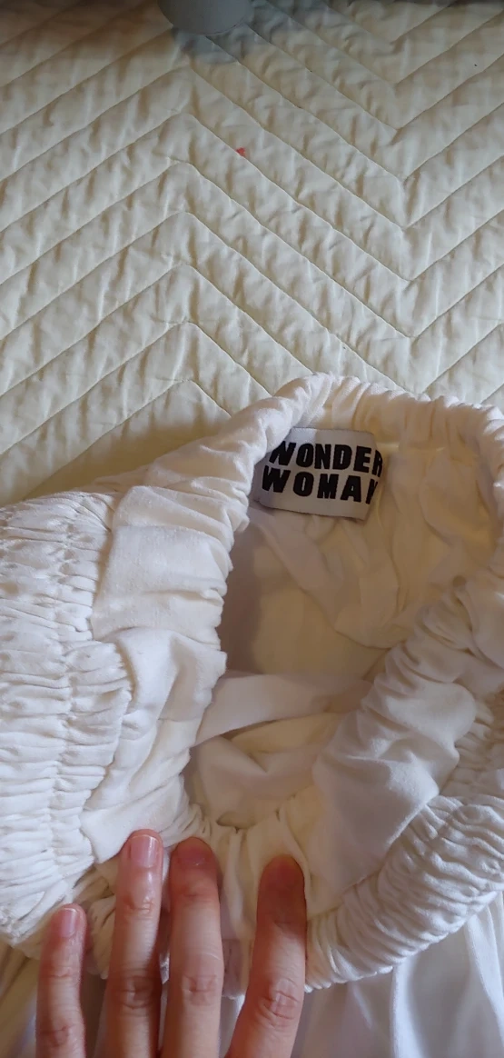 Selling a cute white skirt with a shirred waistband. The brand is Wonder Woman. It is in good condition and ready for a new home!(size S-M)