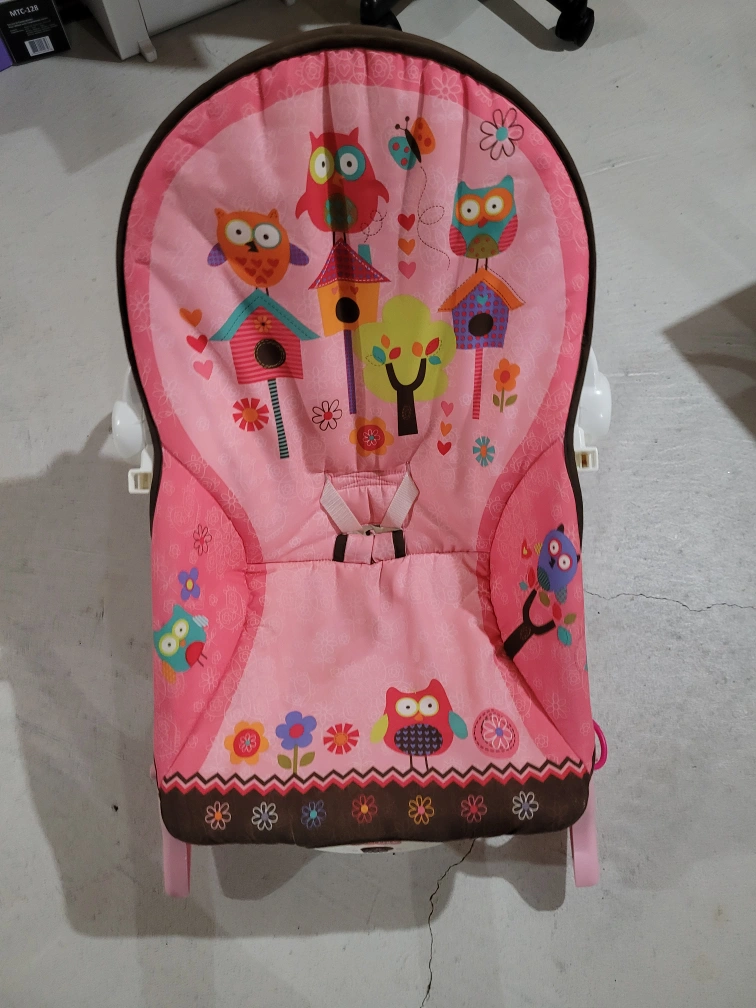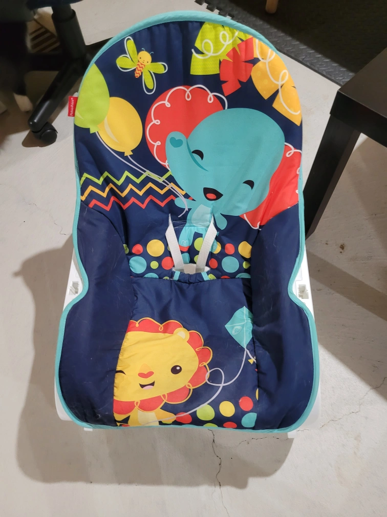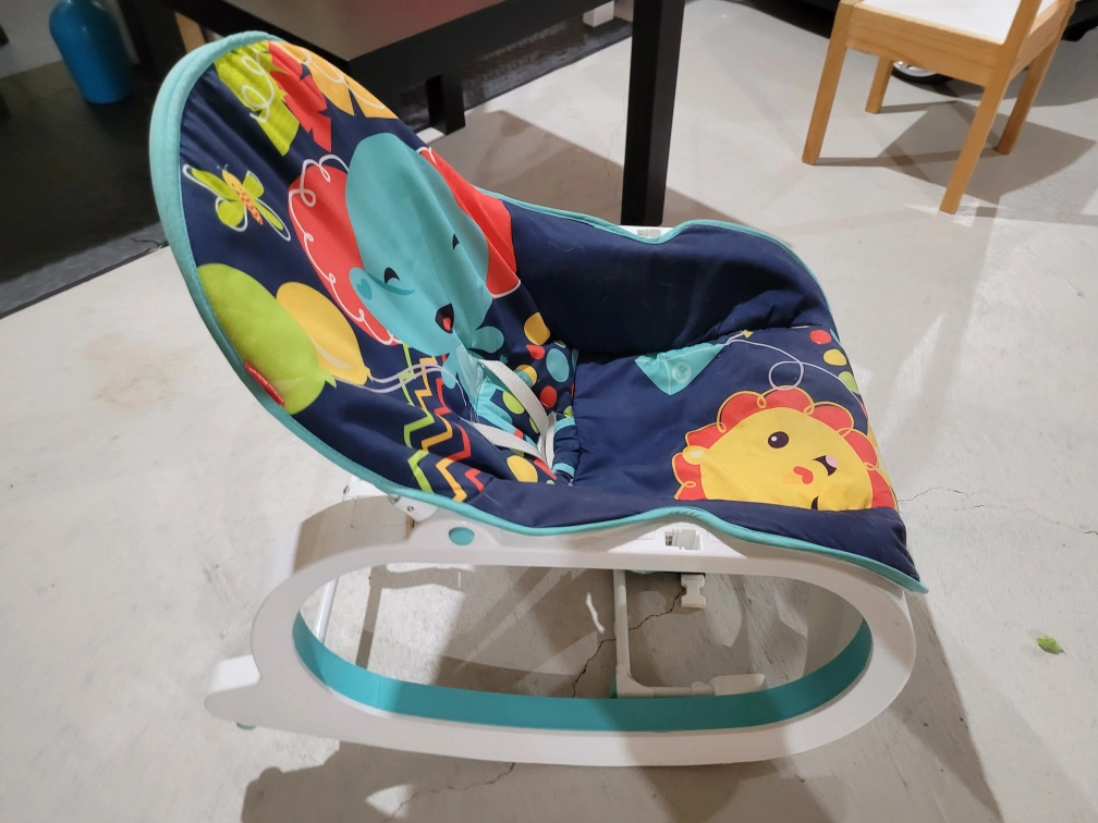 Gently used Fisher-Price baby bouncer seat in great condition! It's perfect for soothing your little one with its gentle rocking motion. The colourful and engaging design will keep your baby entertained. It's lightweight and easy to move around the house, so you can keep your baby close by while you get things done
