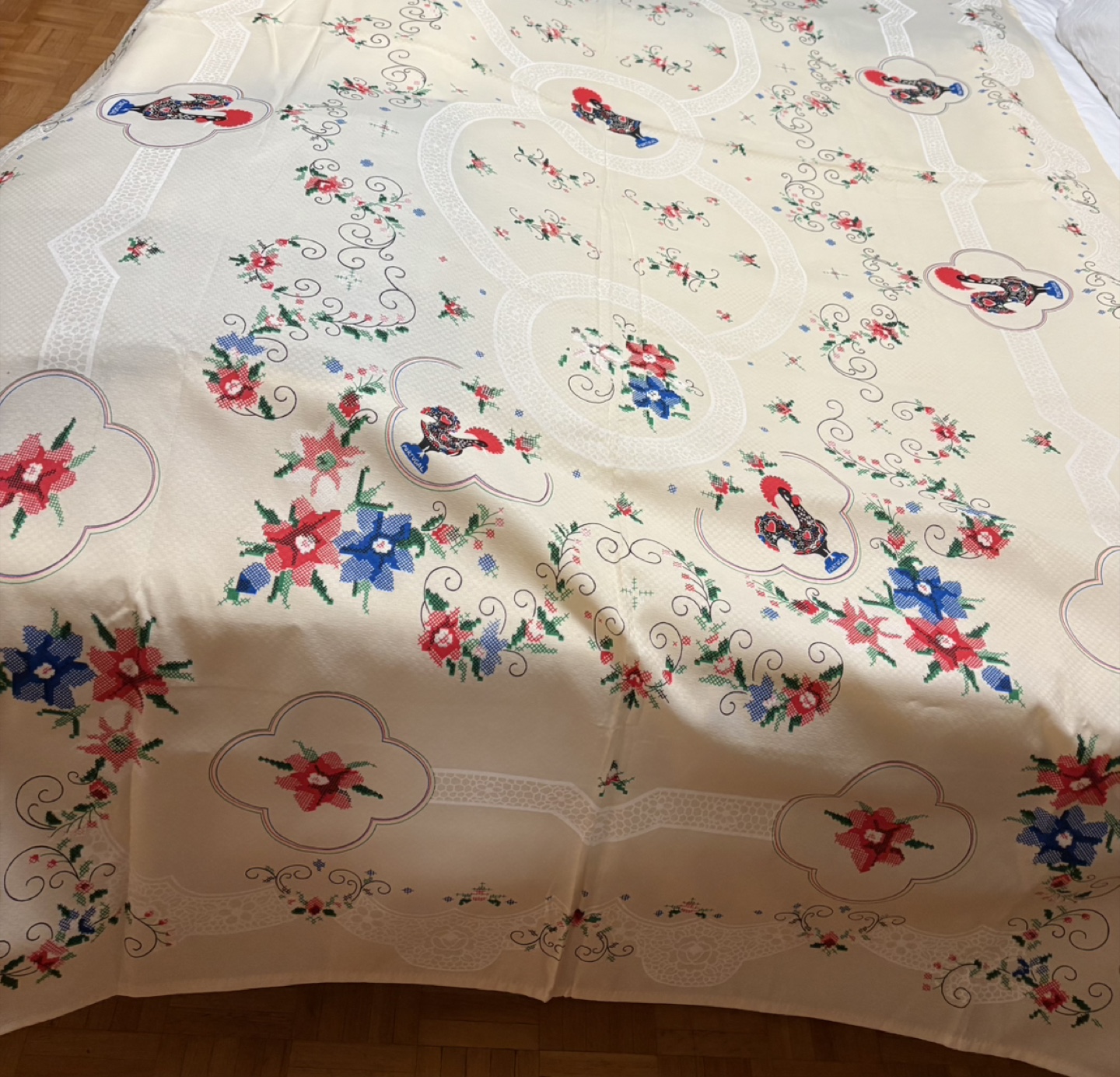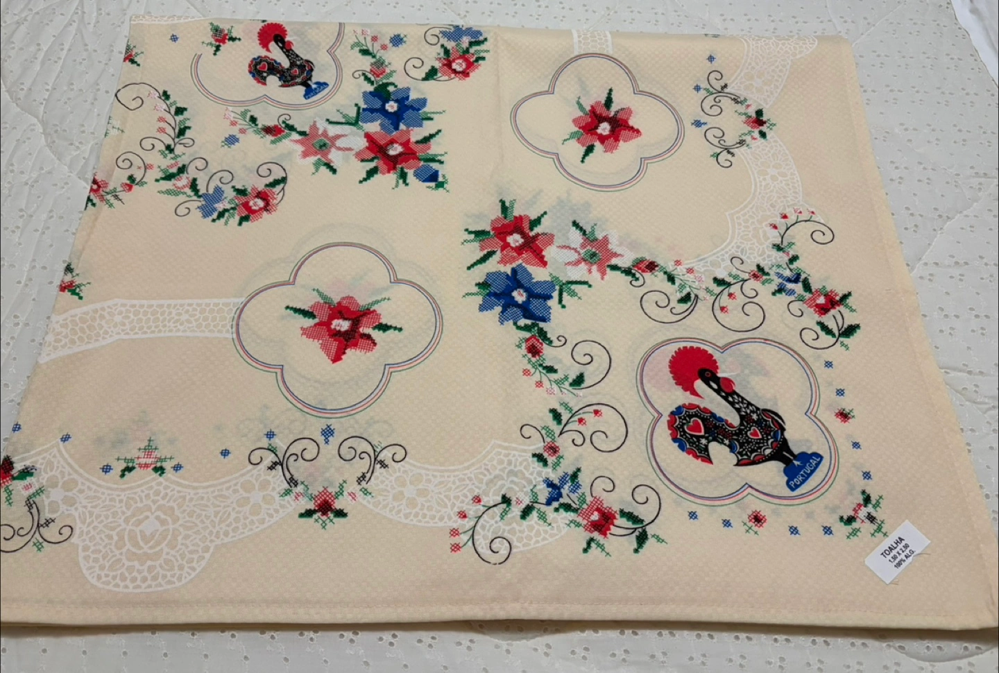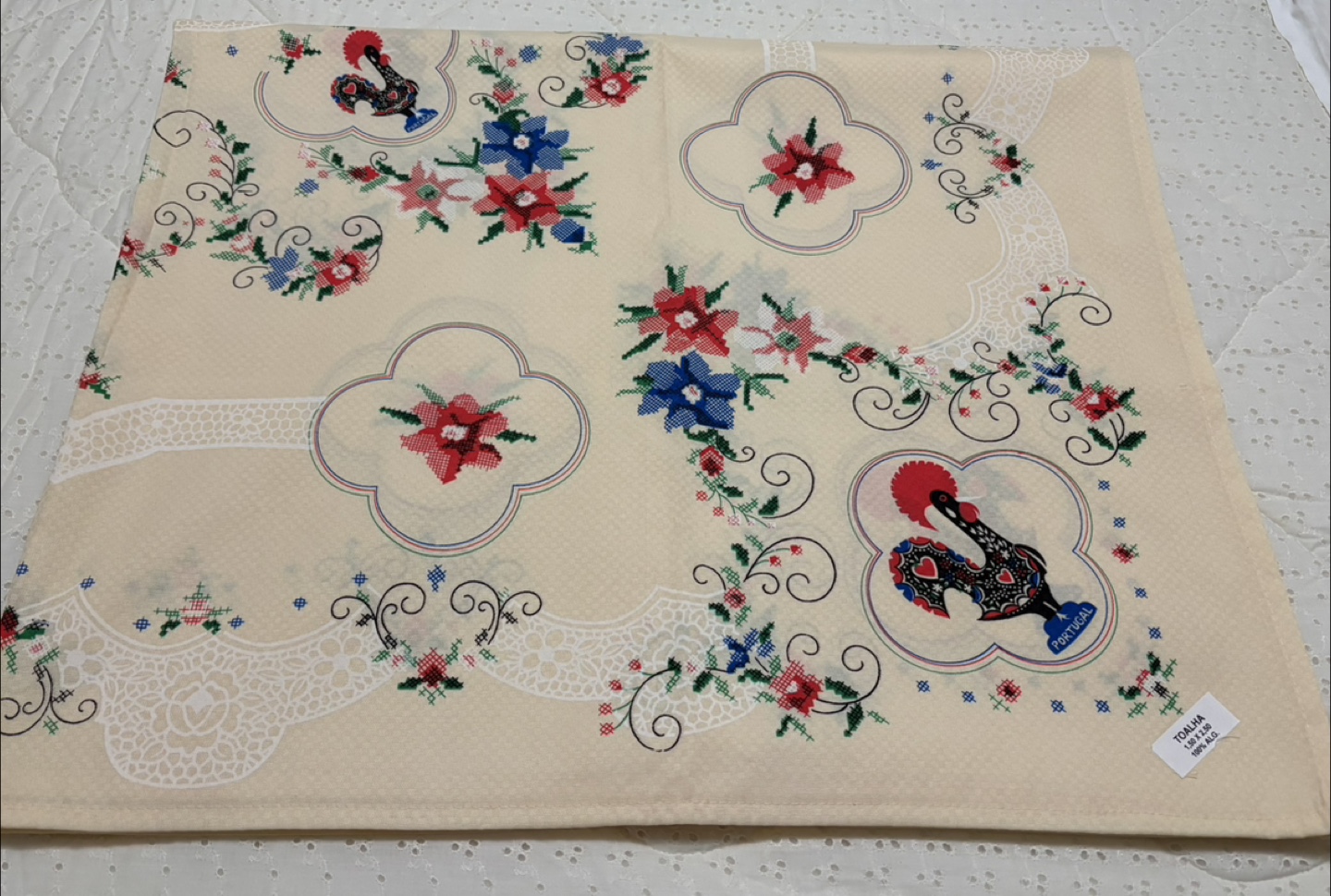 This Portuguese Rooster tablecloth is a vibrant and festive addition to any dining space, showcasing traditional Portuguese artistry with its colourful rooster design and intricate detailing, in excellent condition. It measures 1.50 x 2.50 meters. This tablecloth is brand new. * Size: 1.50 x 2.50 meters * Design: Portuguese Rooster * Material: 100% ALG Looking to add a touch of Iberian charm to your home? This tablecloth is just the ticket! And remember, if the ad is up, it's still available, so don't miss out!