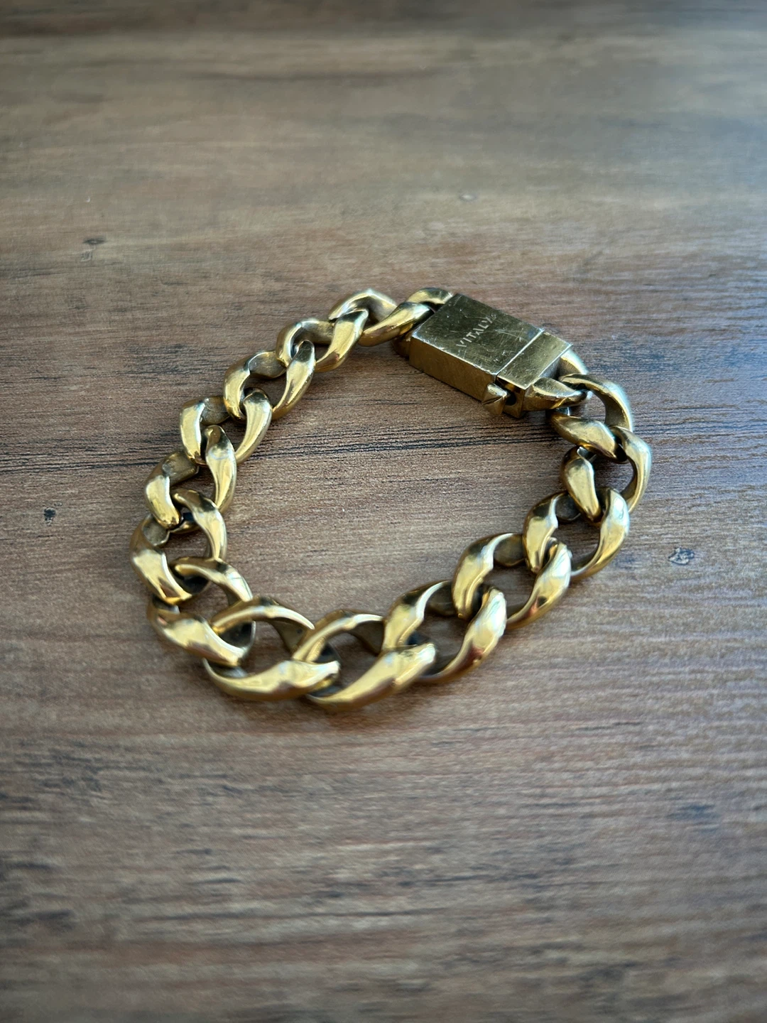 Selling a Vitaly gold chain bracelet (also comes as part of a bracelet and necklace set). It's a stylish piece to add to your collection. The bracelet has some signs of wear, but still looks great!