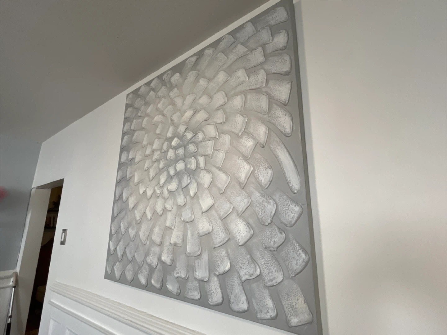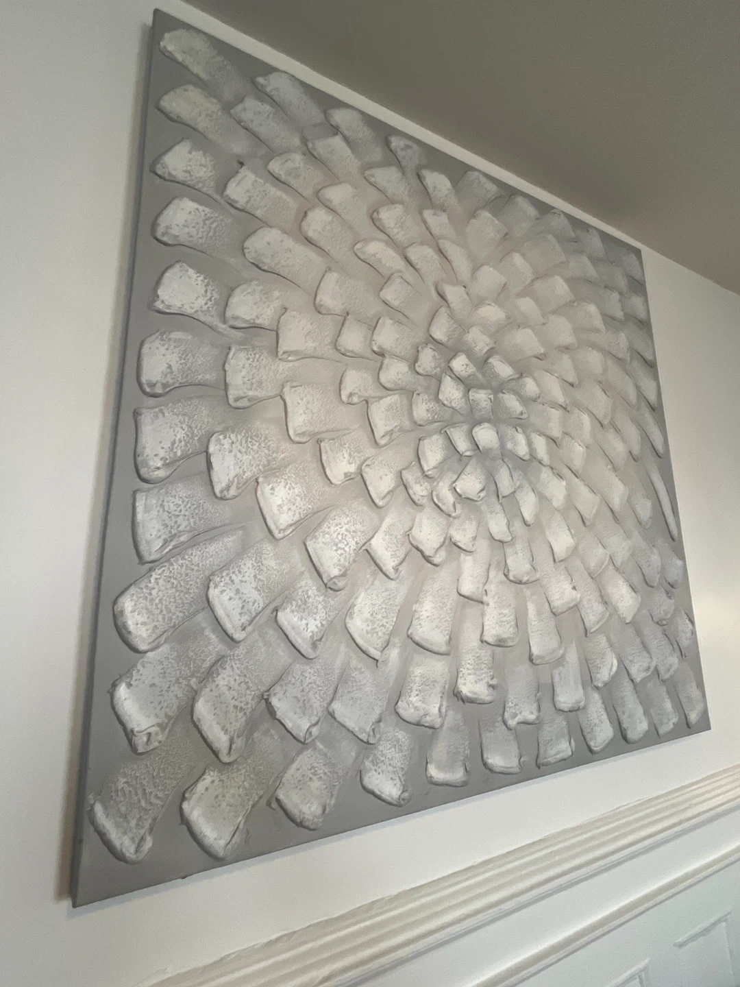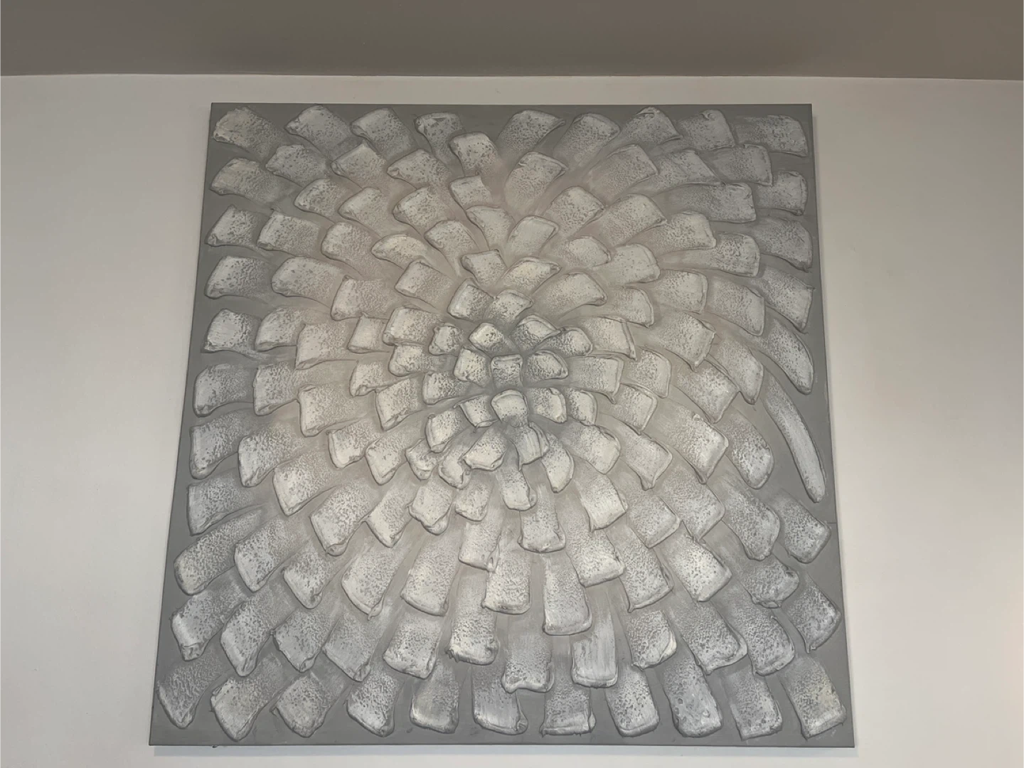 Striking, simple, and beautiful. This is a textured wall art piece in shades of silver and gray. It would look great in any home!