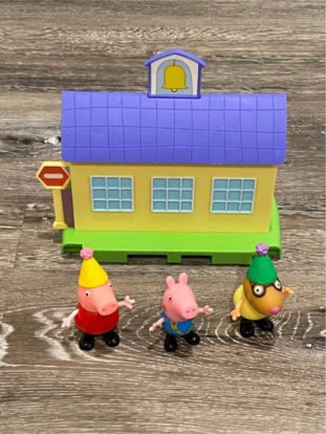 Selling a Peppa Pig schoolhouse playset. It comes with three figures, including Peppa Pig herself! This set is perfect for little ones who love Peppa Pig and imaginative play