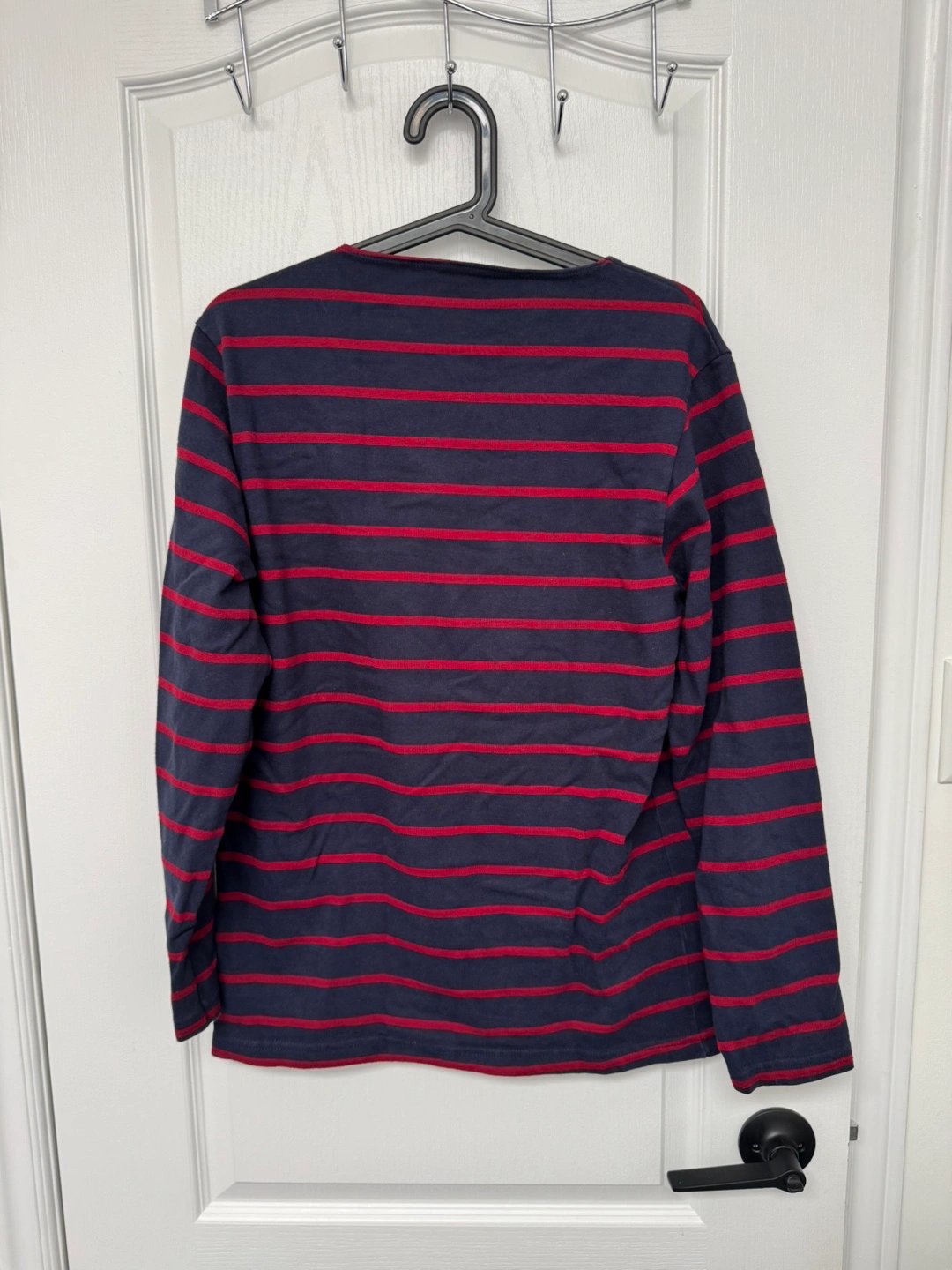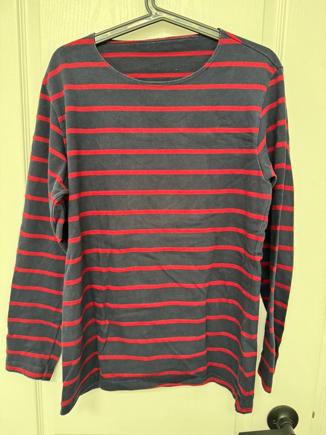 138A comfy long-sleeve top with a classic striped design! It's in great shape and ready for a new home. Perfect for layering or wearing on its own, this top is a versatile addition to any wardrobe