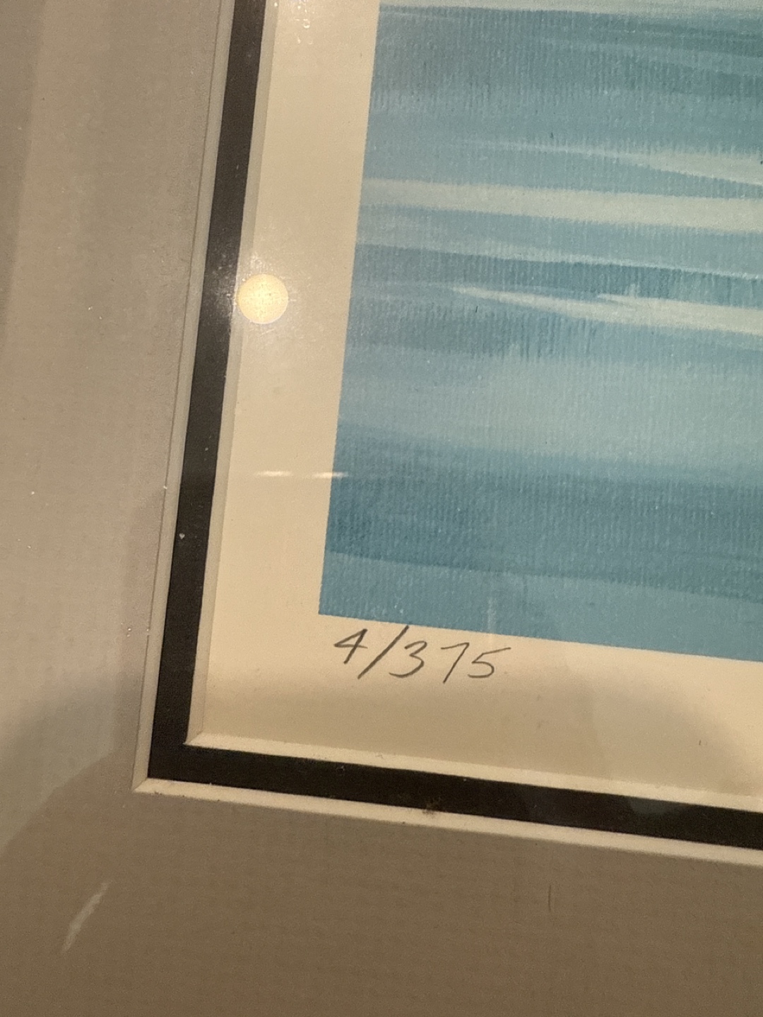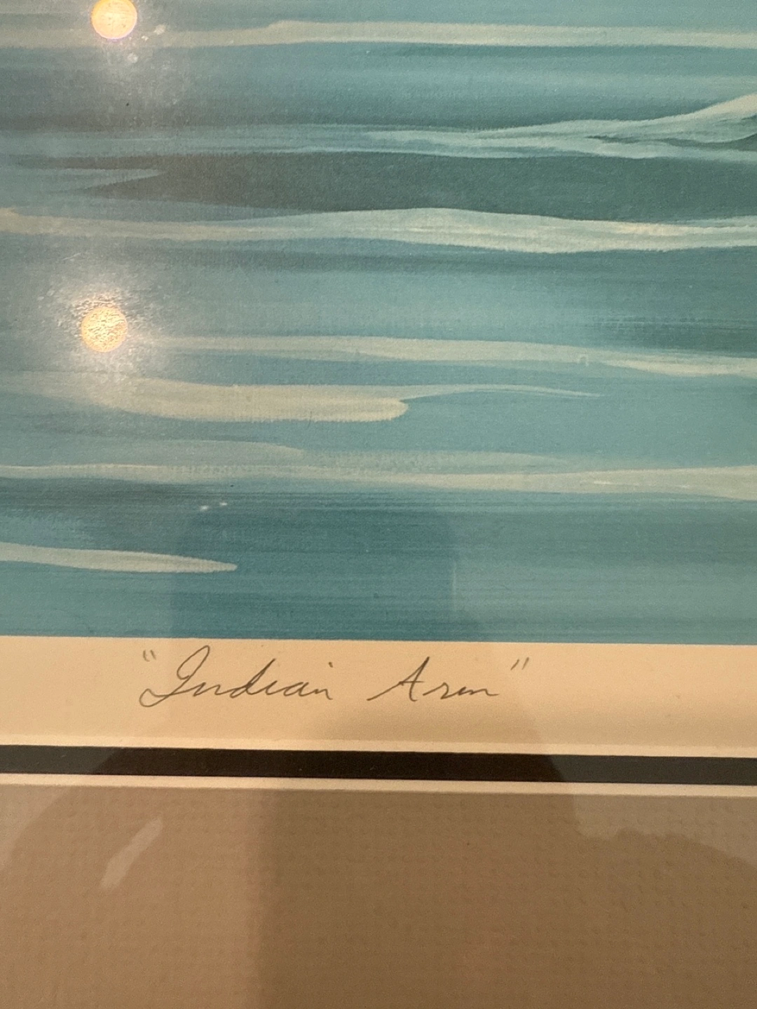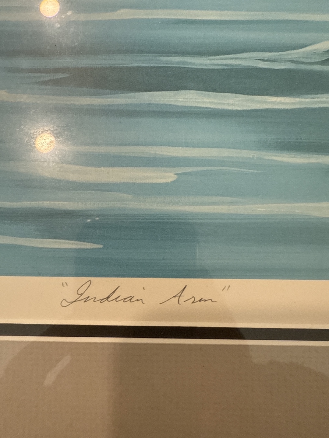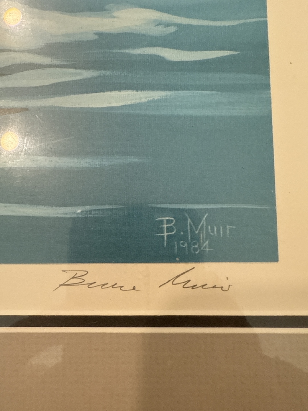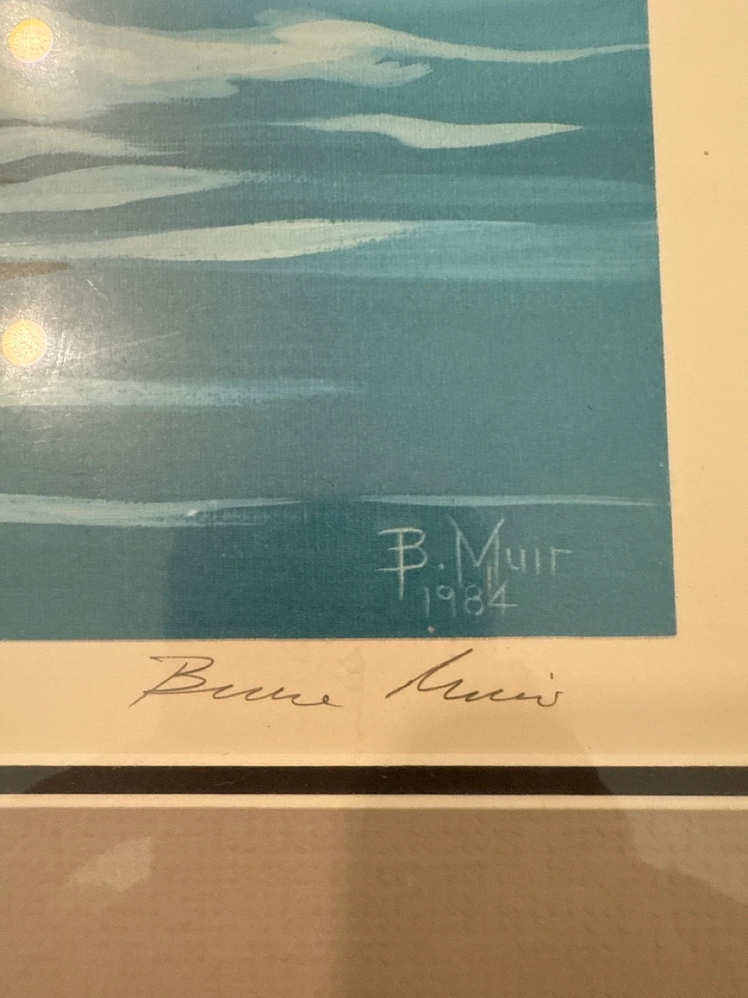 Selling a framed print by Bruce Muir called "Indian Arm"! It's a lovely piece and numbered 4/375. The artist's signature is also visible on the print. Perfect for adding a touch of Canadian art to your home