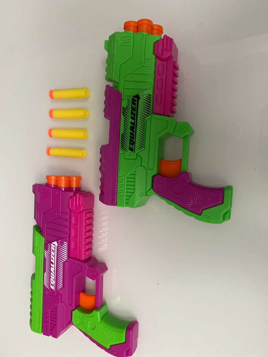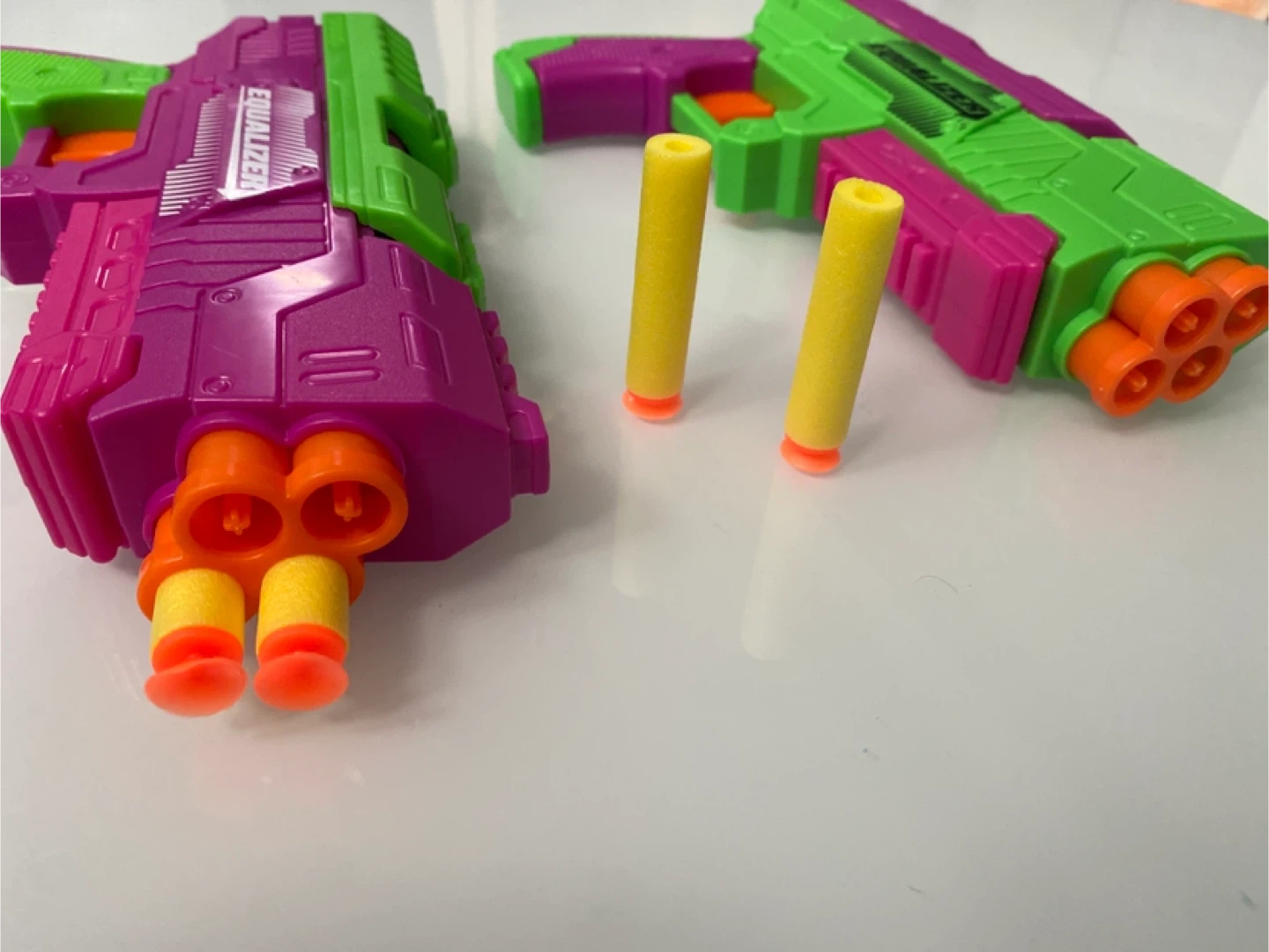 Selling a set of two Equalizer Nerf guns. They are in great shape and come with a few foam darts. Perfect for some fun and safe playtime!