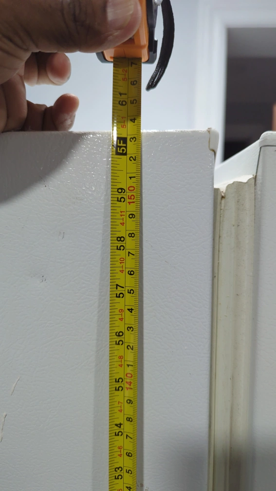 Selling a GE top freezer refrigerator. It's white and measures approximately 5 feet tall and 27 inches deep. Great for extra storage!