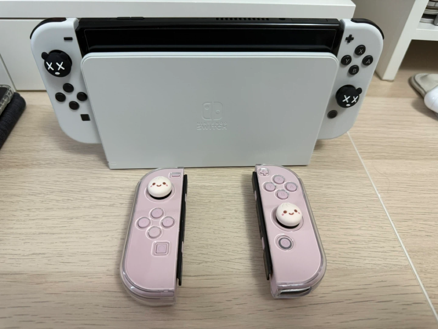 ✔️ Custom light pink Joy-Cons in addition to the original white joycons