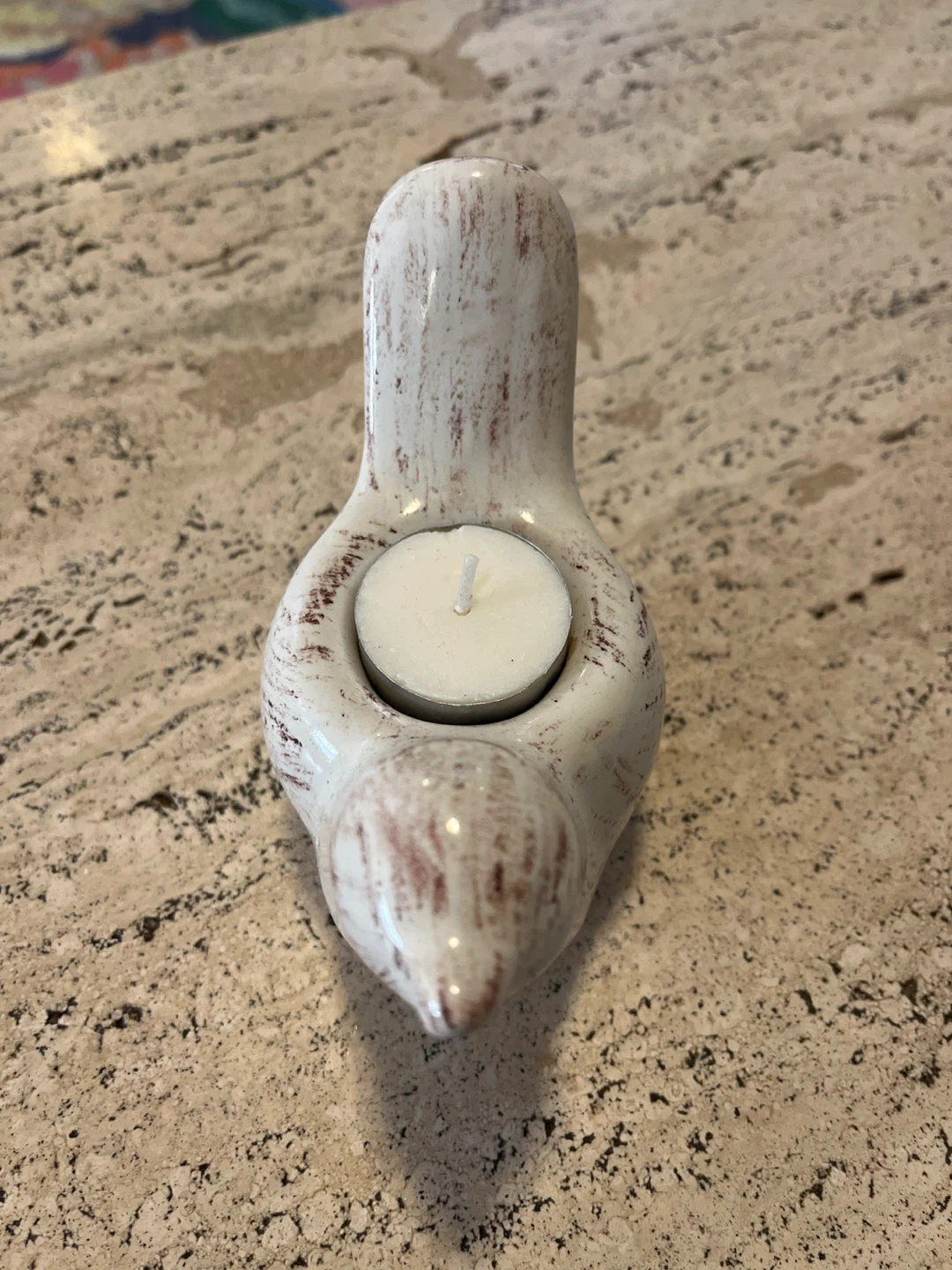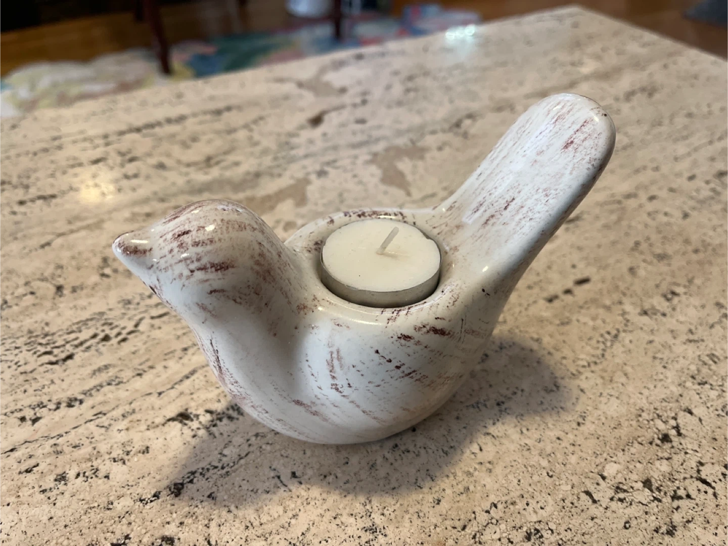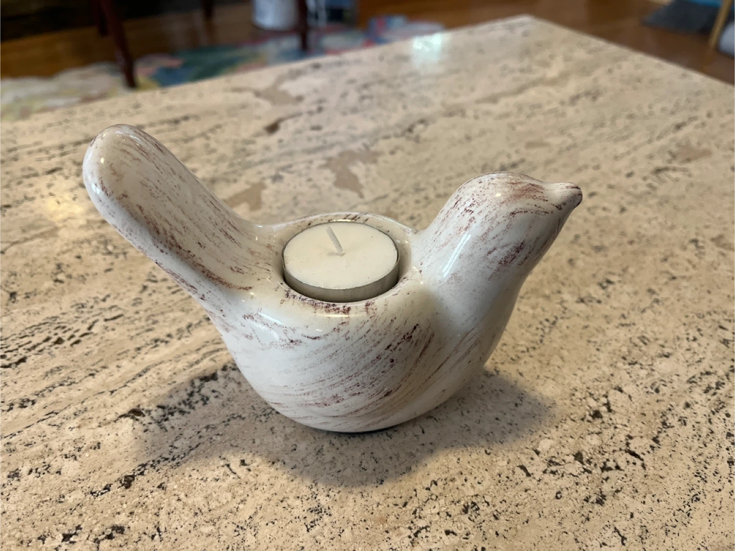 Here's a cute bird-shaped tea light candle holder! It's in great condition and ready to add a touch of charm to your space. Free (upon request) with another purchase.