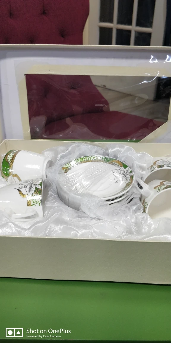 Selling a brand new tea cup set, still in its original box! The set includes cups and saucers, all neatly arranged with the original packaging. Perfect for tea time or as a gift