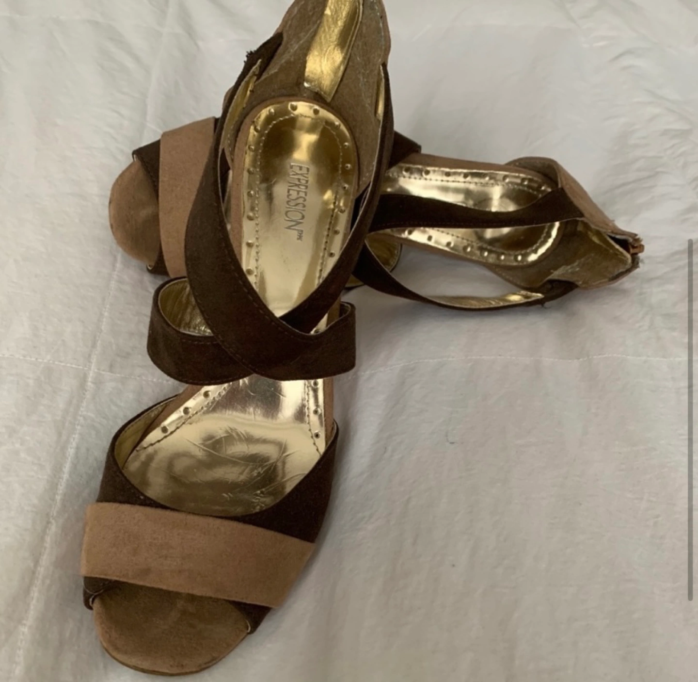 Brown & Tan Suede Heels Women’s 8.5