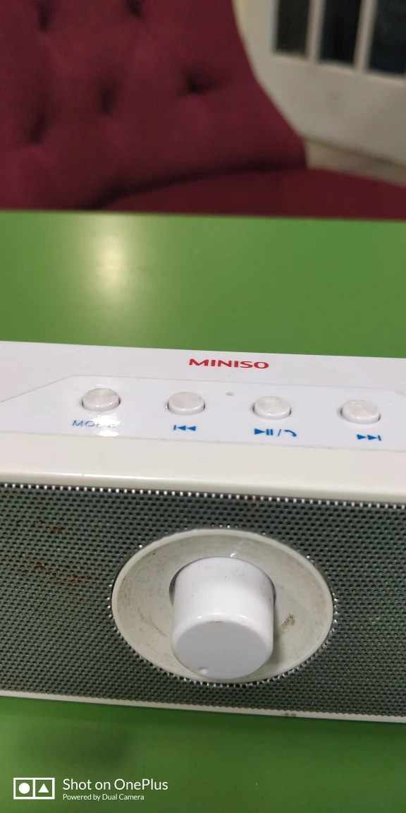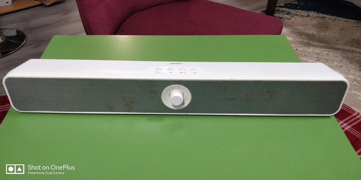 Selling a white sound bar from Miniso. It has a sleek design and is easy to use. Perfect for small spaces or adding sound to your computer setup!