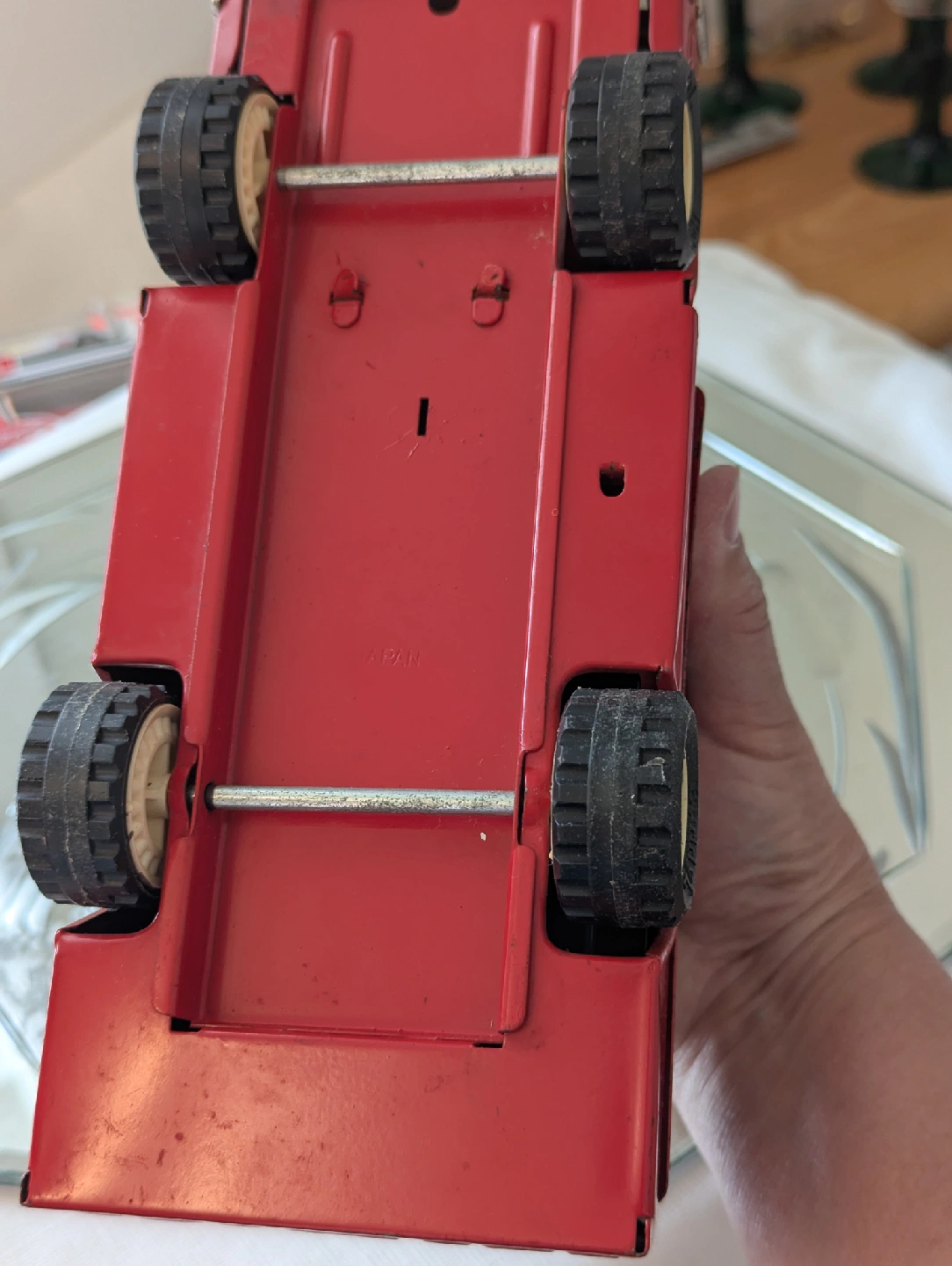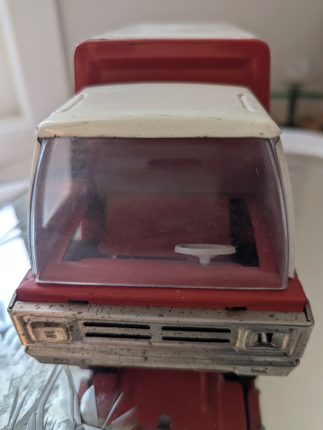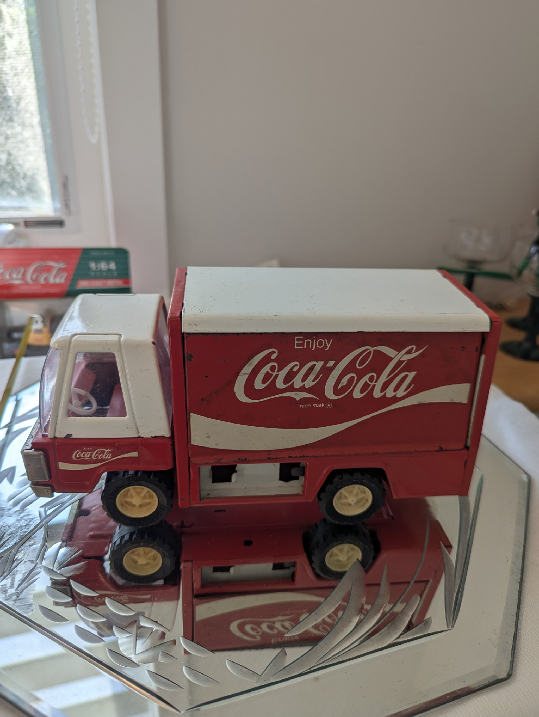Selling a vintage Coca-Cola delivery truck toy! Vintage Coca-Cola Buddy L 9” Tin Litho Truck JAPAN No Bottle Cases. The aide opens up, revealing shelving inside. A great piece for collectors or anyone who loves classic Coca-Cola memorabilia.