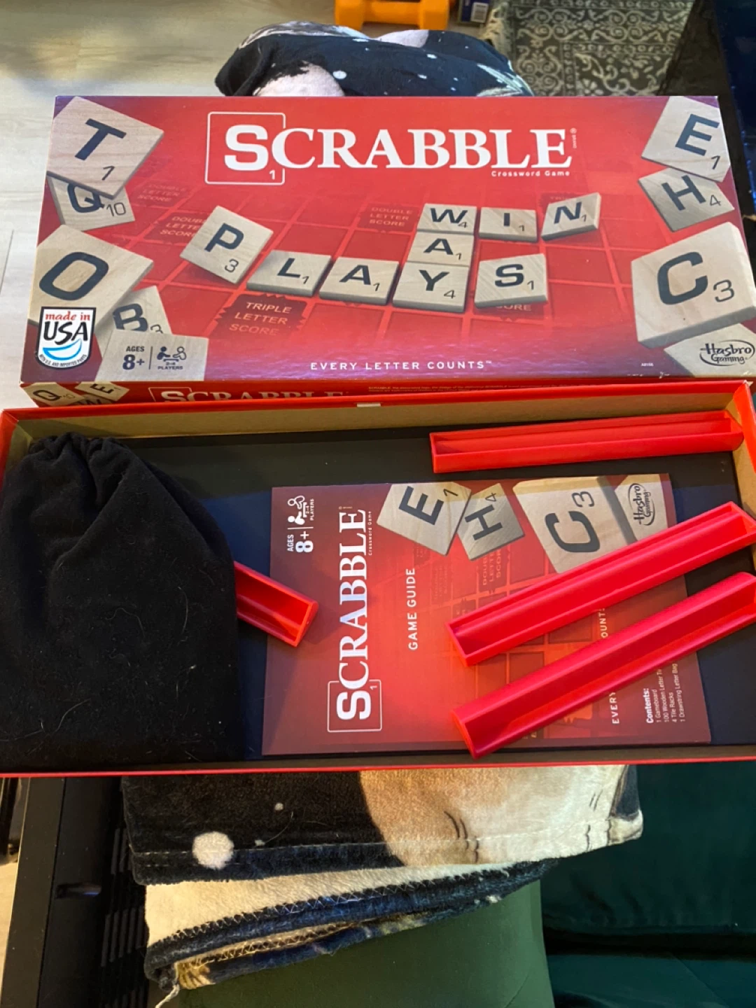 Selling a Scrabble Crossword Game, perfect for ages 8 and up! It's a classic game that's fun for the whole family. The box includes everything you need to play, including the game guide, tiles and tile racks