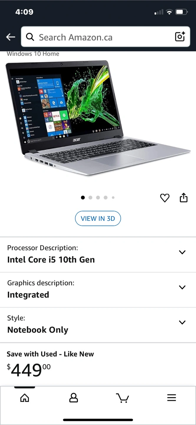 Selling an Acer Aspire 5 A515-55 series laptop! It's in great condition and ready for a new home. Perfect for school, work, or just browsing the internet. This thin laptop is lightweight and portable, making it easy to carry around Comes with laptop charger 10th Gen Intel Core i5-1035G1, 8GB DDR4, 256GB NVMe SSD, Intel Wireless WiFi 6 AX201, Fingerprint Reader, Backlit Keyboard, Windows 10 Home $449 on Amazon - Used.