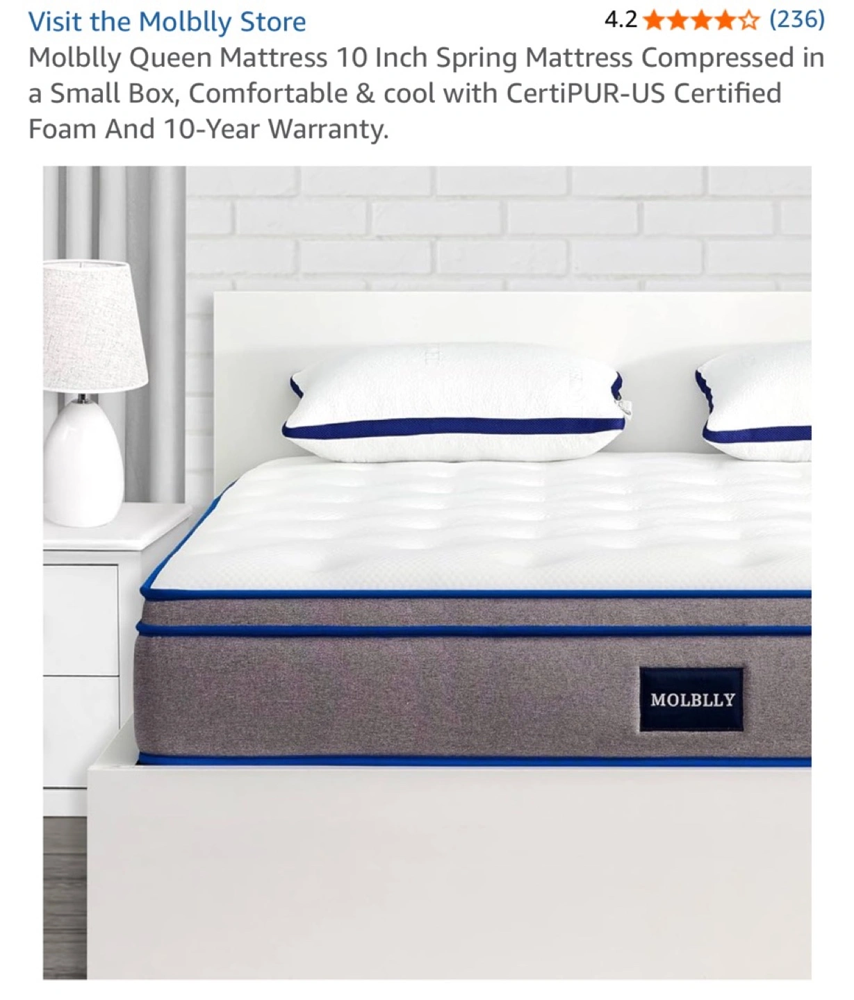 This is a 10-inch spring mattress designed for comfort and coolness, featuring CertiPUR-US certified foam.