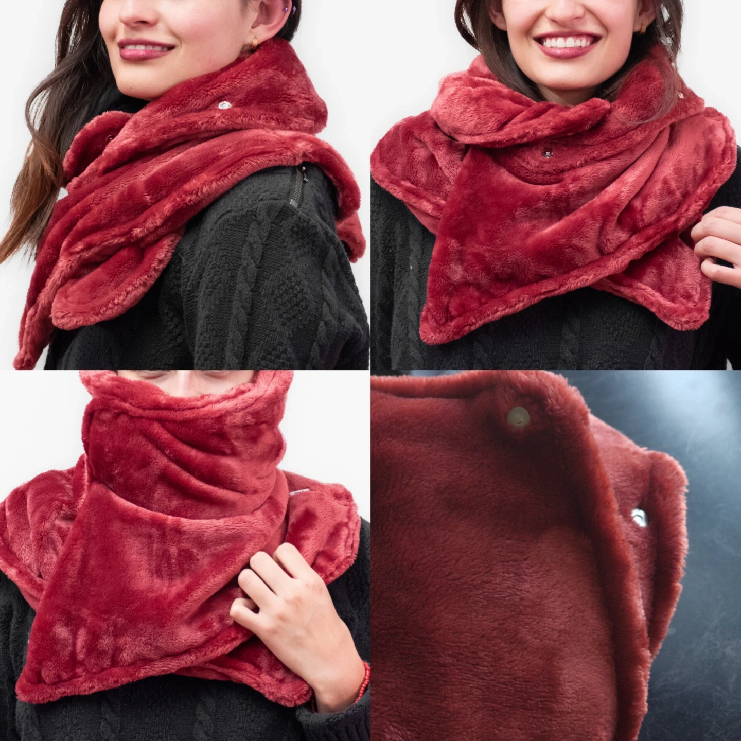 Prepare for winter. Keep cozy with this thic and soft fleece neck warmer! It's a beautiful red colour and feels so soft against the skin. Perfect for protecting your face in those super cold winter days! Original design with magnetic buttons, machine washable.