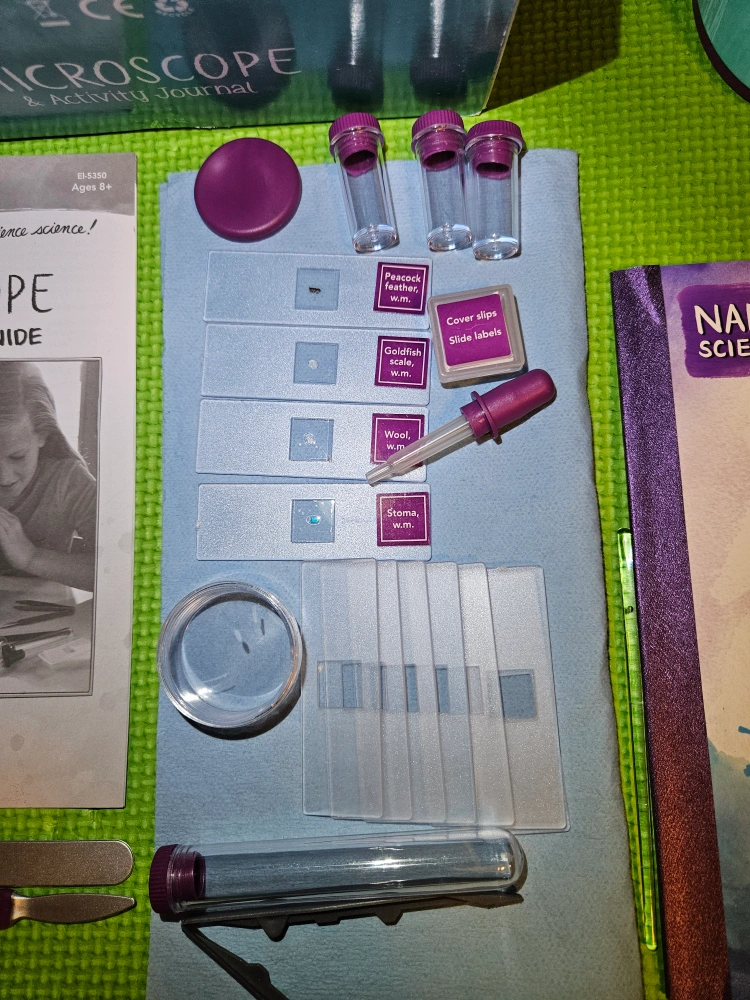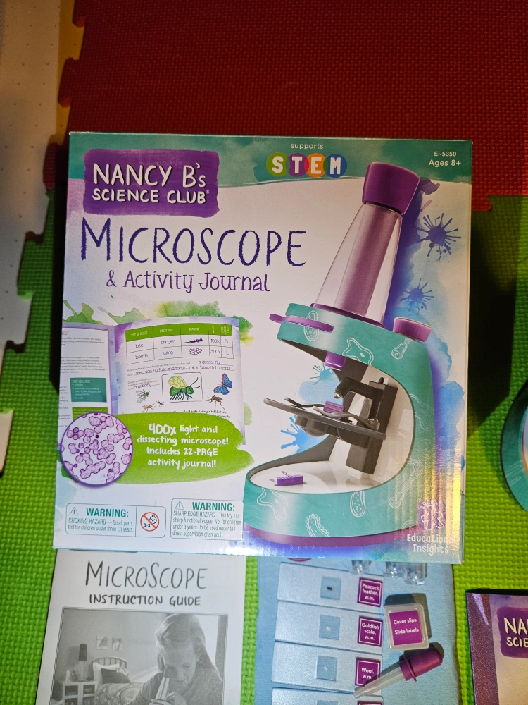 New condition Nancy B's Science Club Microscope & Activity Journal. The microscope was used to view the prepared slides but all accessories and book were not used.. Price includes: - a 400x light and zoom microscope - activity journal to guide your experiments. - tools and containers for specimen preparation - 4 prepared slides - 7 blank slides Recommended for ages 8+ to spark a love for STEM