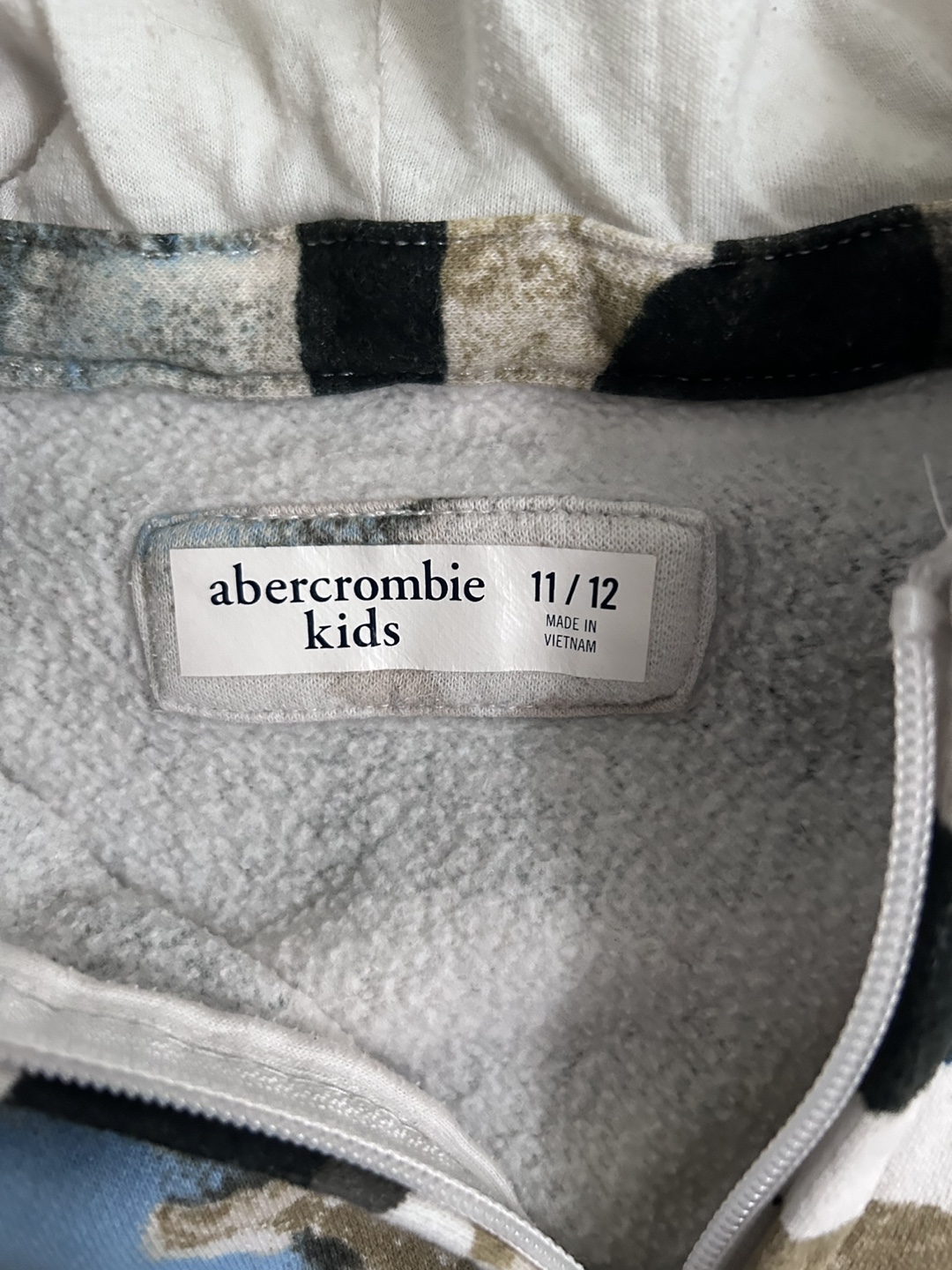 Selling an Abercrombie Kids zip-up hoodie in a cool camo pattern! It's a size 11/12 and perfect for layering or wearing on its own. Great for any kiddo!