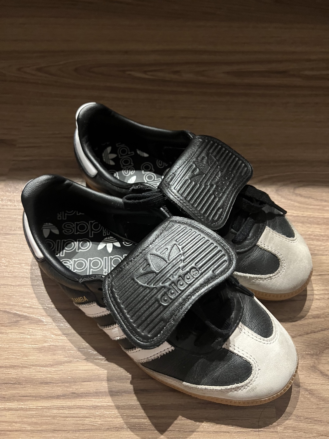 Selling a pair of Adidas Samba shoes in black and white for kids. These are in great shape and ready for a new home! Classic style for your little one