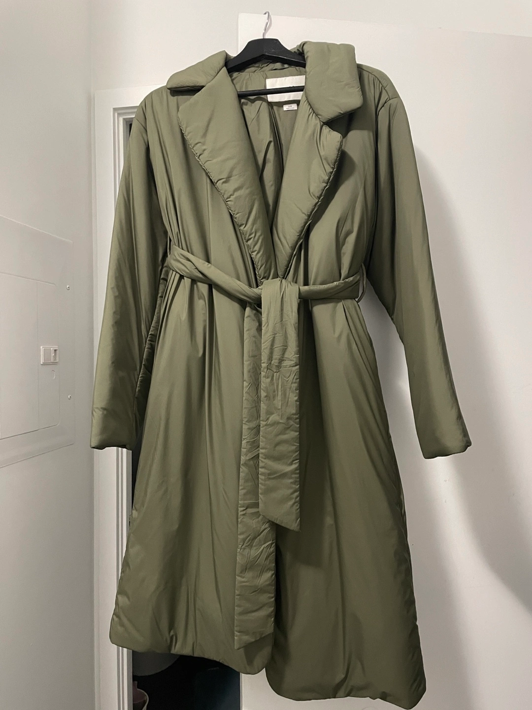 Selling a Babaton Fairbanks puffer coat in size 2XS. It's in good condition with a bit of a mark as shown in the photos. It was only used a couple of times. Colour is gunmetal green. It comes with a belt to cinch the waist and the small bag to pack it in for travel. Great for staying warm this winter! I am normally an XS and I sized down for a better fit, FYI. Here is the link to the item for more information, although this is a different colour: https://www.aritzia.com/en/product/fairbanks-puffer/84736.html?color=1274 Pick up only. Prefer to be paid in cash. Thank you